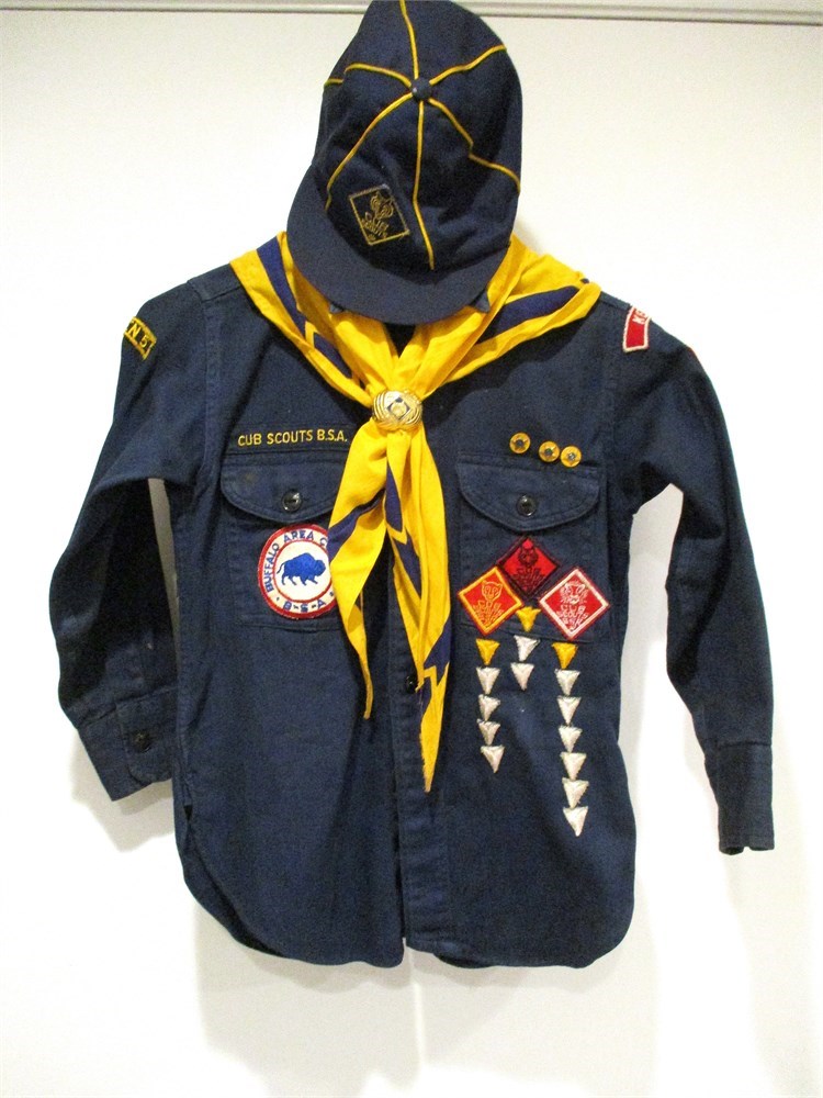 Vintage, Cub Scout Uniform with Cap, Scarf, Neckerchief Slide
