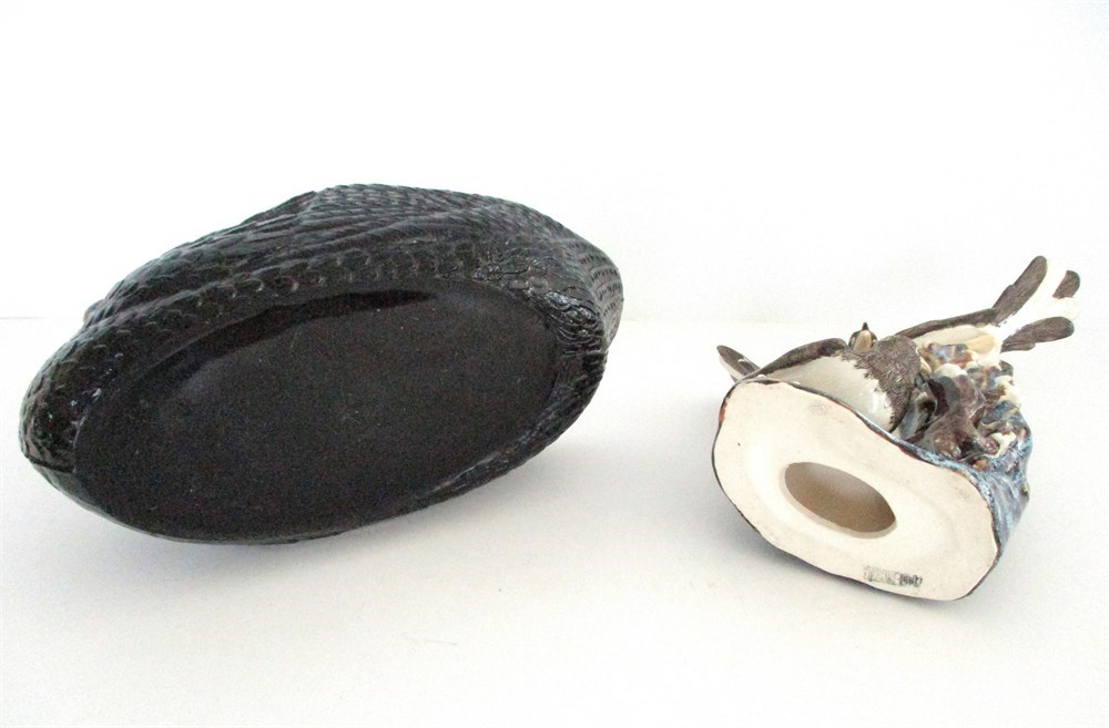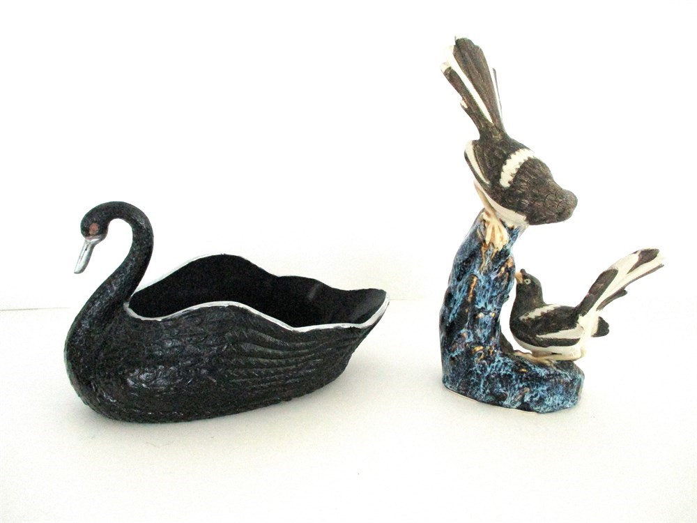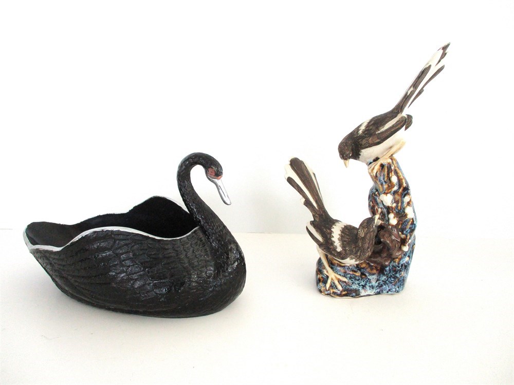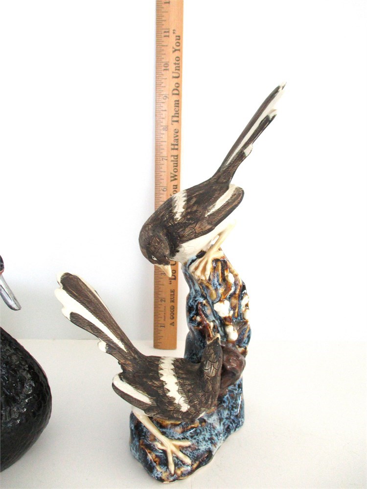 A very nice 2 piece vintage lot consisting of a Black Swan Planter and a Bird Sculpture.  The Black Swan is in lovely condition and lovely detail.  The Bird Sculpture also has lovely detail and color.  Both are in beautiful vintage condition.