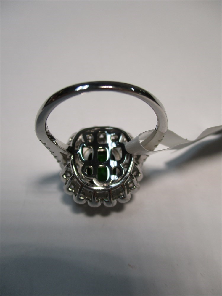 Sterling Silver and Green Octagon Cut & White Round Cut CZ's Ring