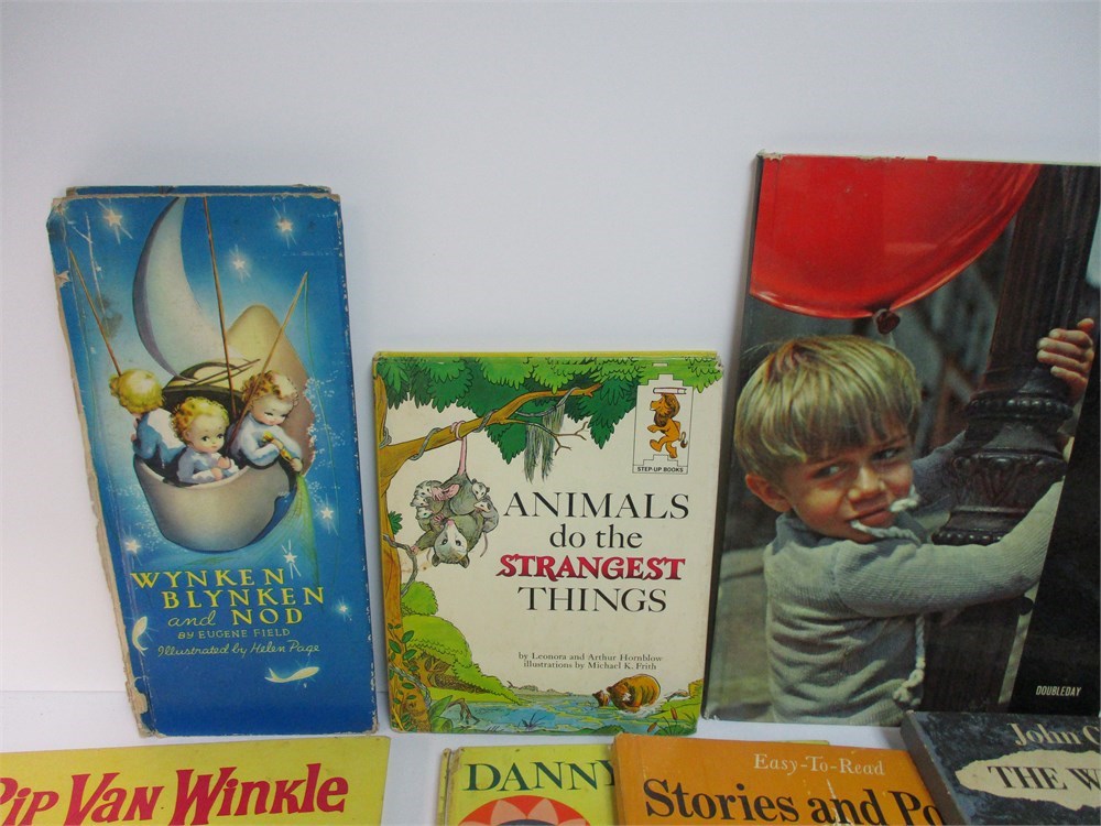Wonderful Lot of 12 Vintage Children's Books. All in good and lovingly used condition.  The front and back cover of Wynken Blynken & Nod have completely separated.  See last picture.