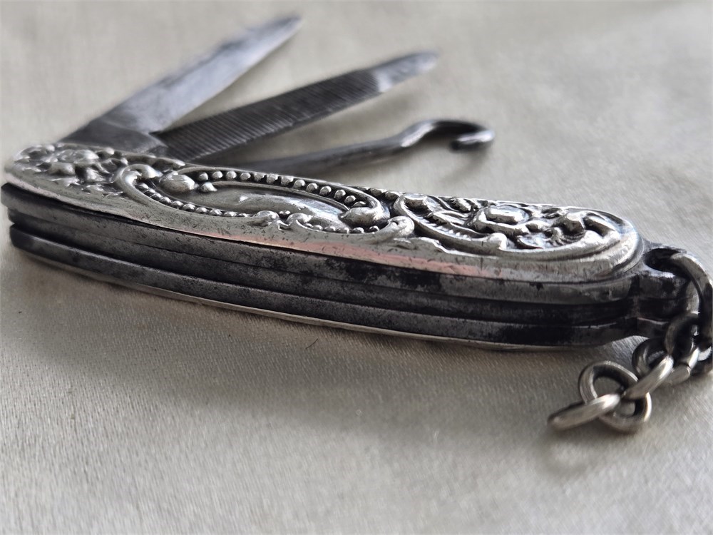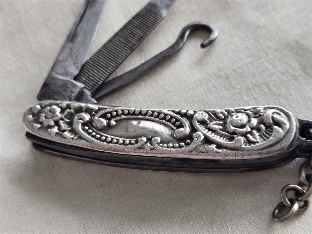 • Antique silver (tests sterling but no mark) miniature multi-tool / knife