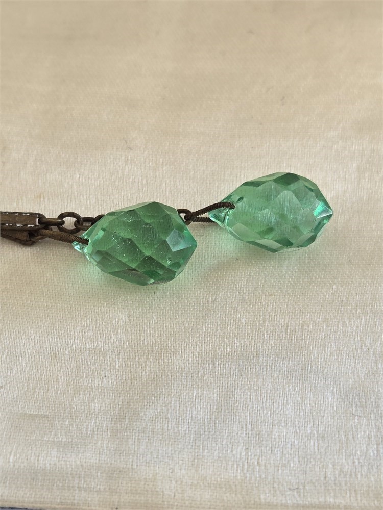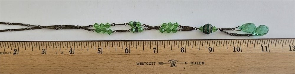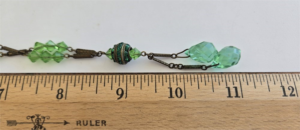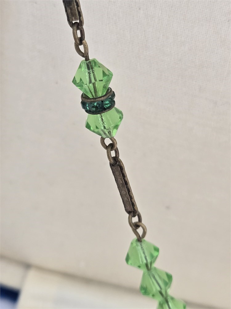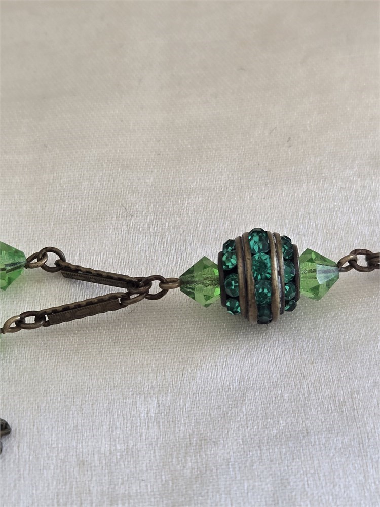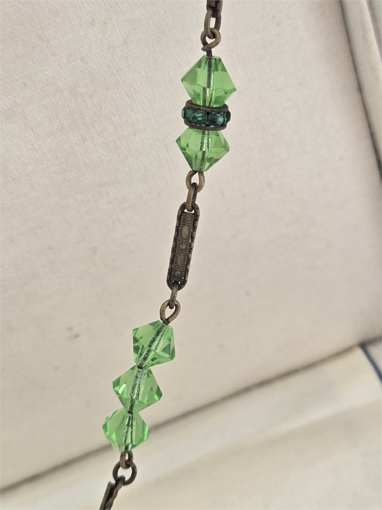 ANTIQUE 1920s ART DECO CZECH GREEN GLASS RHINESTONE DROP NECKLACE