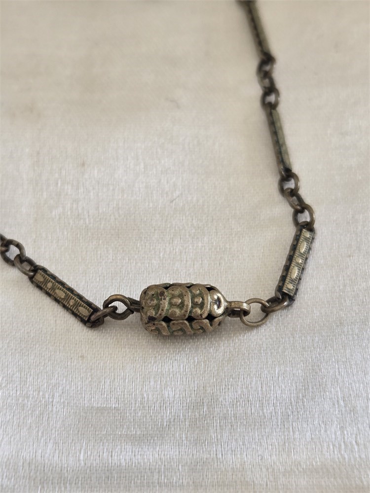 Condition: Very good antique condition. Normal patina to metal. No cracked beads. Ready to wear or display.