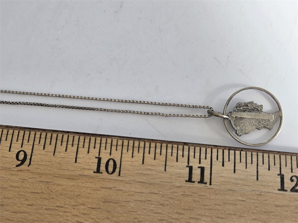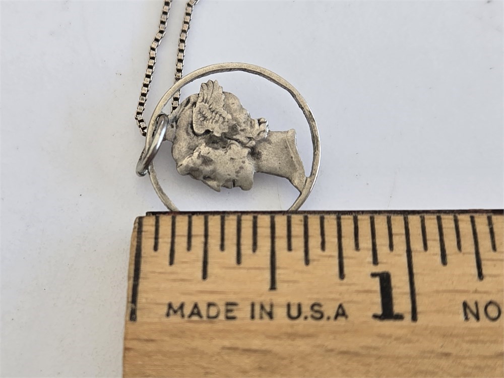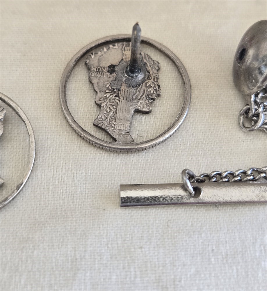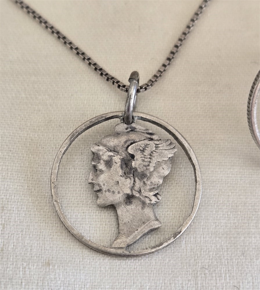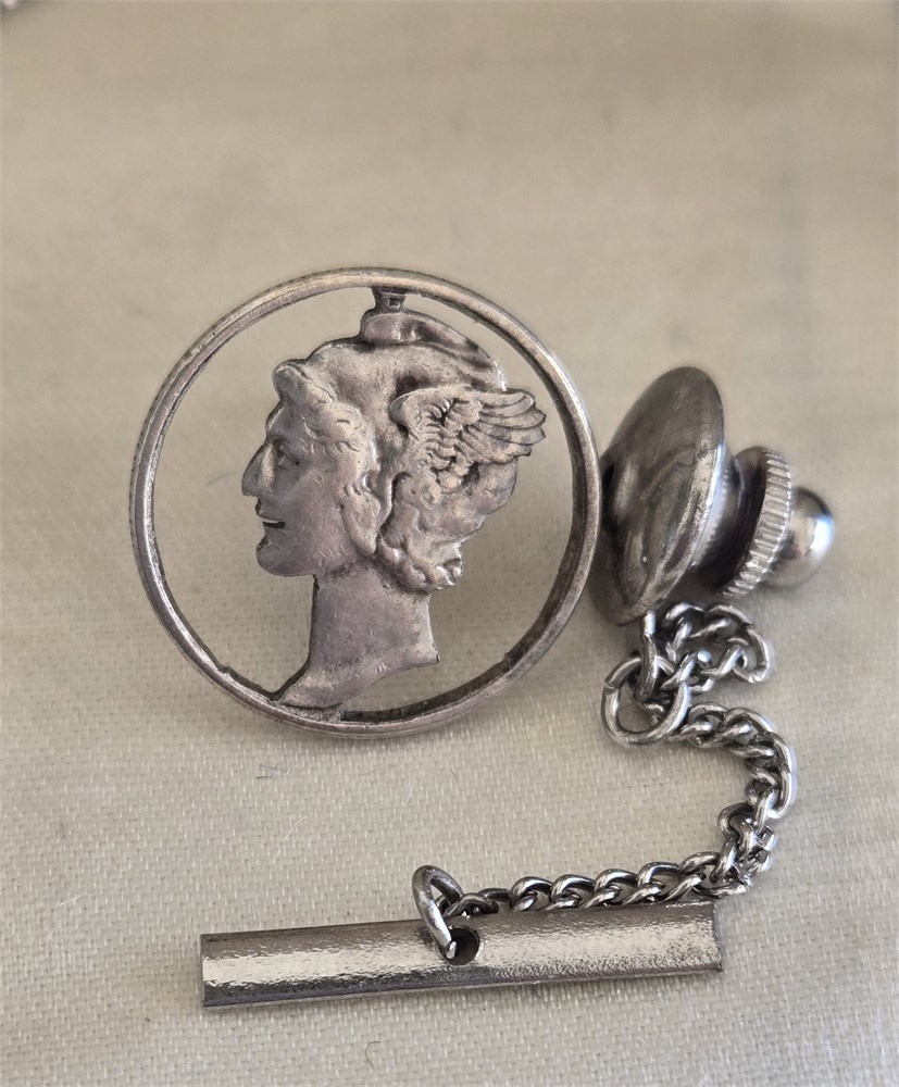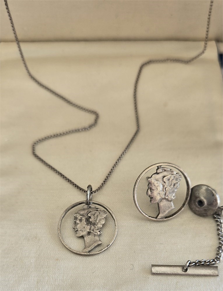 Vintage Hand-Cut Mercury Dime Necklace & Matching Tie Tack Sterling Chain