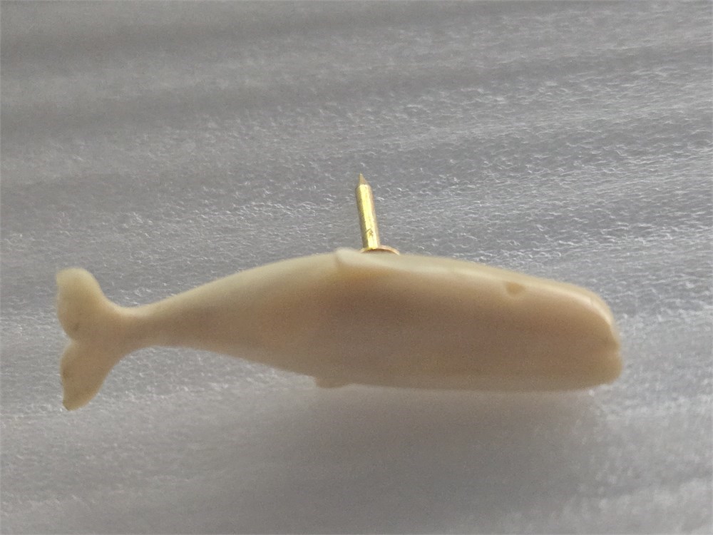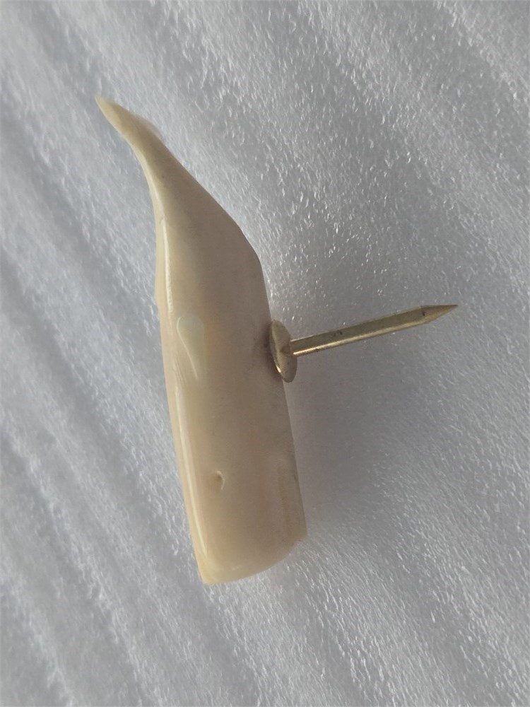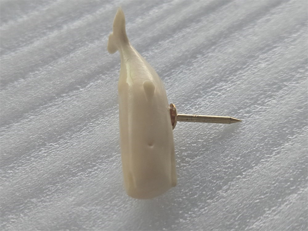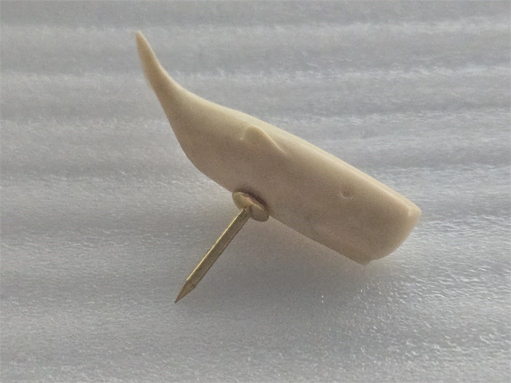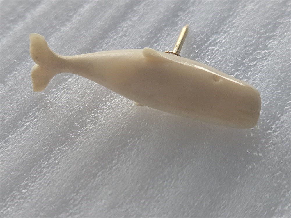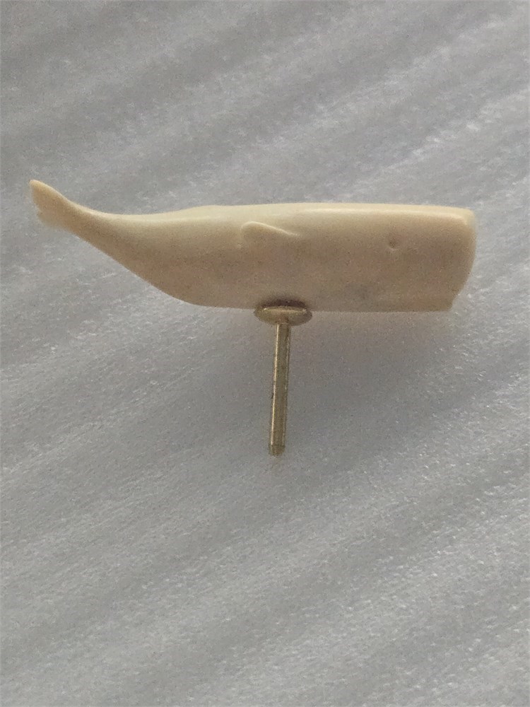 ANTIQUE MINIATURE CARVED IVORY WHALE PIN 14K GOLD HANDCARVED NAUTICAL SOUVENIR