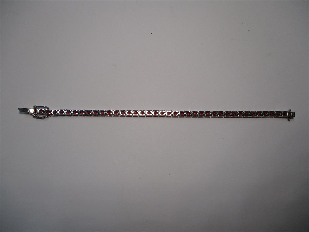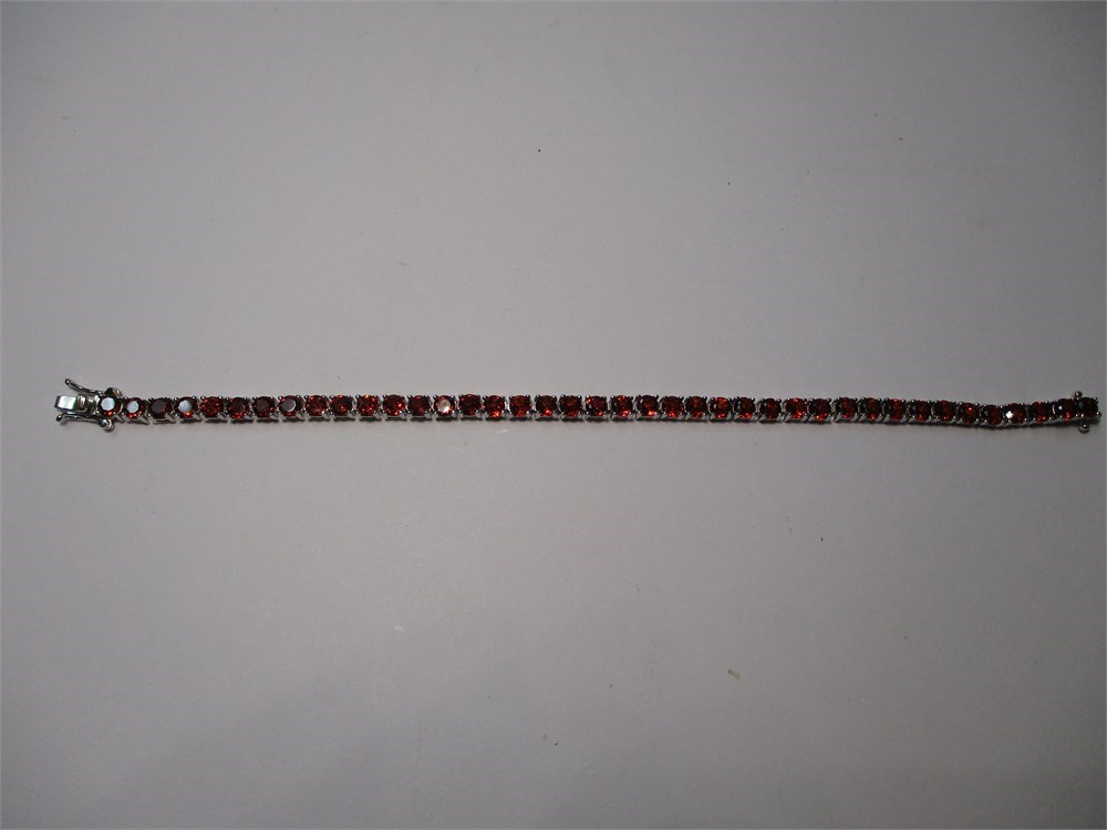 A Beautiful Sterling Silver & Round Faceted Tourmaline Bracelet.  Each stone is prong set.  It has tongue and groove clasp with two figure eight safety catches.  It measures 7" in length. Thailand.