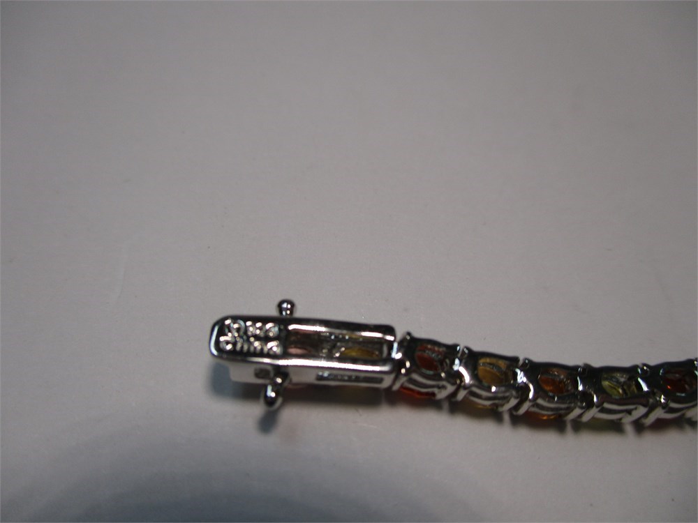 A Beautiful Sterling Silver & Round Faceted Multi Faceted Bracelet.  Each stone is prong set.  It has tongue and groove clasp with two figure eight safety catches.  It measures 7" in length. Thailand.