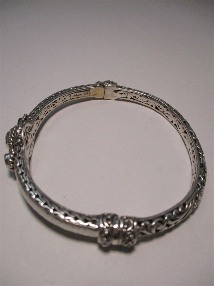 Ornate, Balinese, Sterling Silver & Round Faceted Tanzanite, Filigree Bracelet