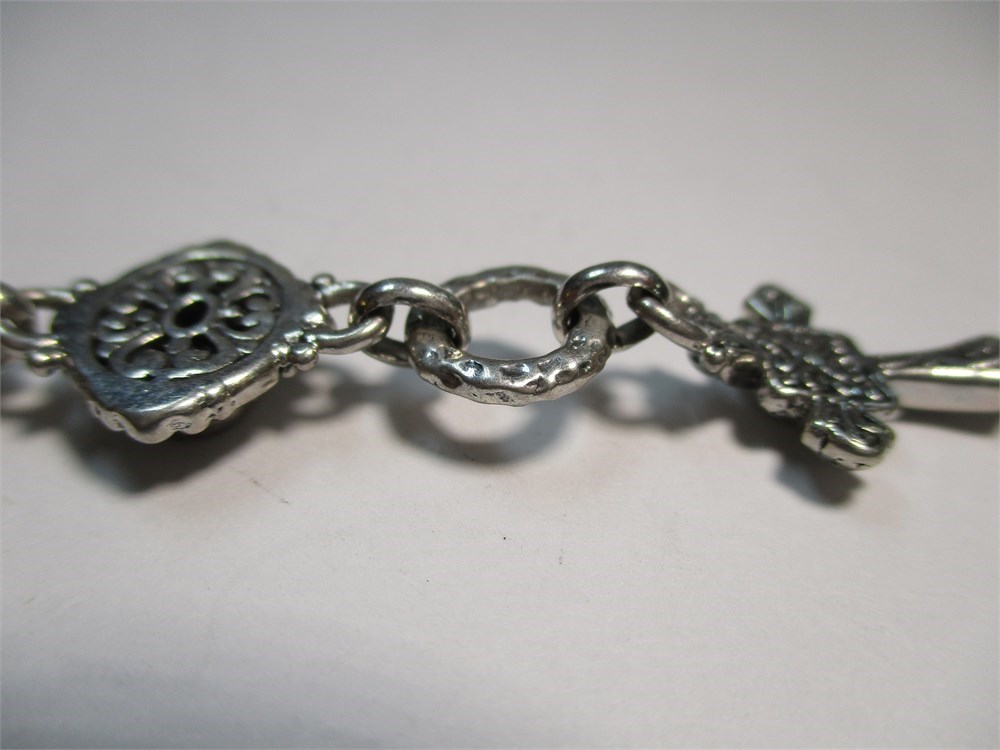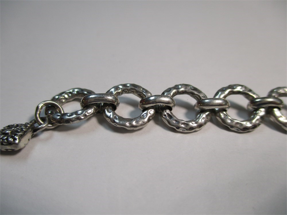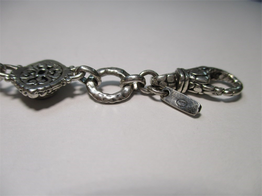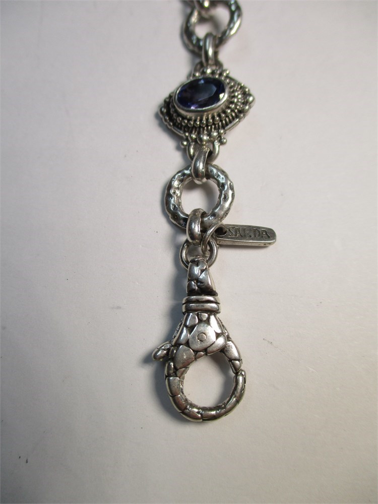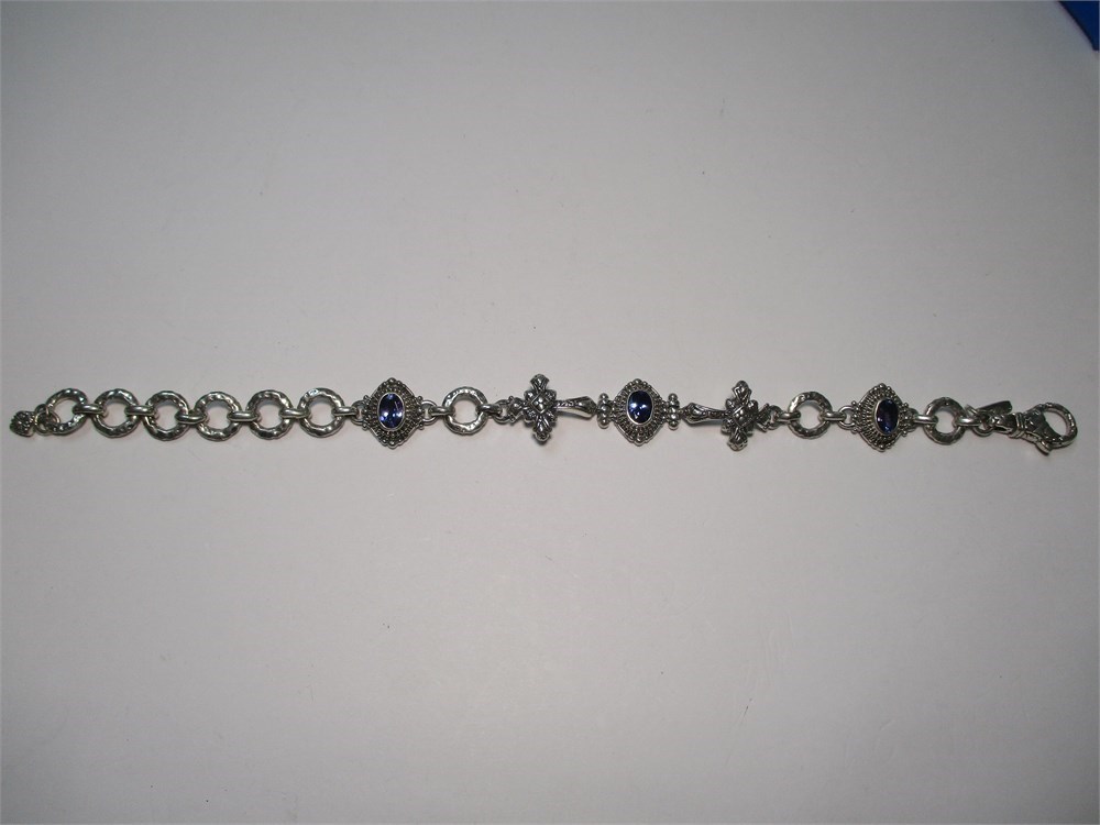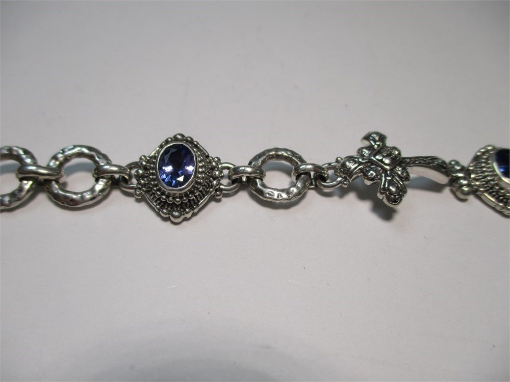 A Beautiful Balinese Artisan Crafted, Ornate, Sterling Silver & Oval Tanzanite Stone Bracelet.  The three Tanzanite stones are set in a high bezel in an east west direction.  Overall length is 8" that includes the additional links for length adjustment. Can go from a 7" to 8" wrist.  Hallmarked Sarda 925.