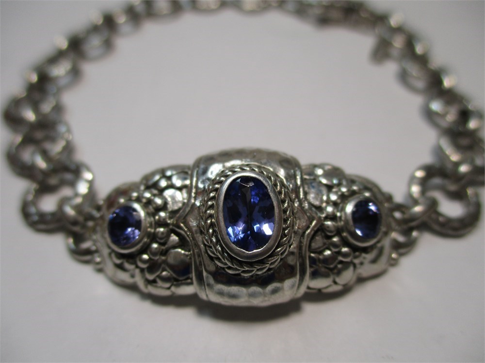 Artisan Crafted Balinese, Sterling Silver & Tanzanite Link Bracelet