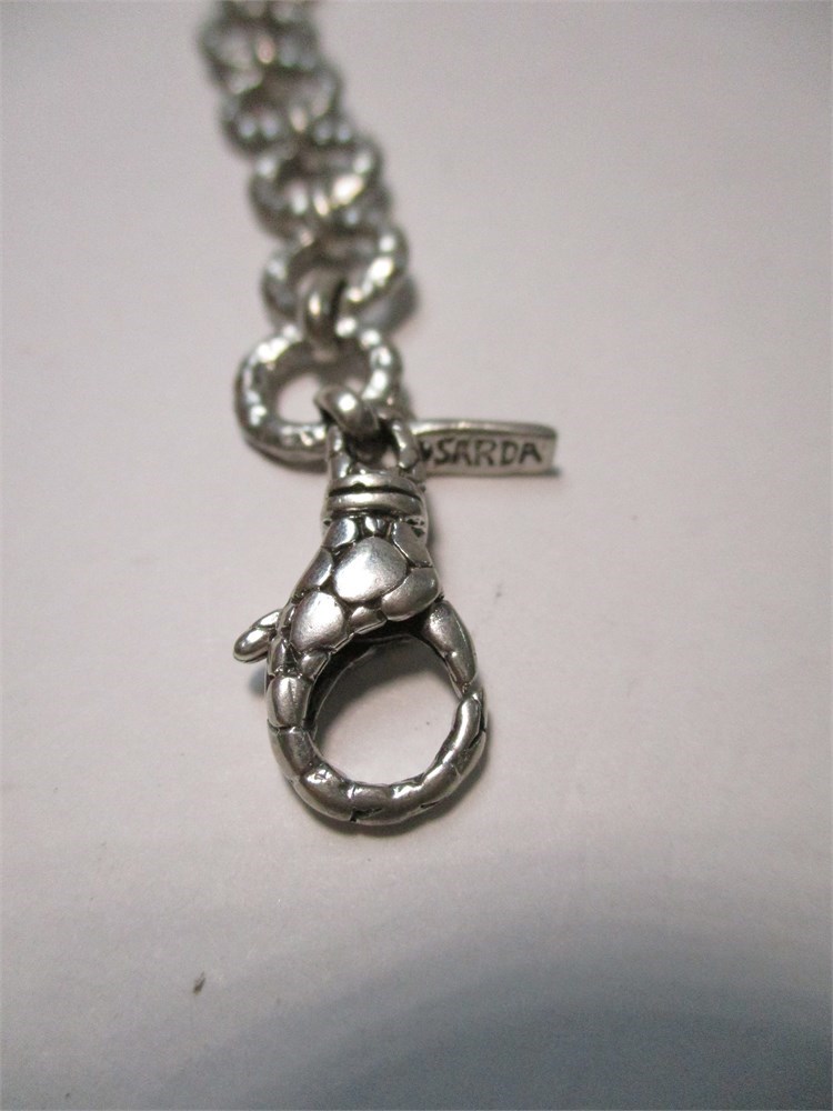 This is a lovely Artisan Crafted Balinese, Sterling Silver & 3 Stone, 2 round and one oval faceted Tanzanite Link Bracelet.  Beautiful filigree work around each stone and hammered detail on the links.  It measures 8.5" in length. Lobster Claw clasp.  Hallmarked Sarda 925.