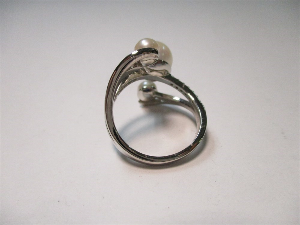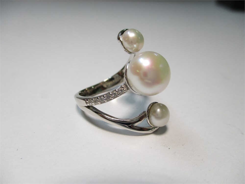Sterling Silver and Faux Pearl & CZ Cocktail Ring