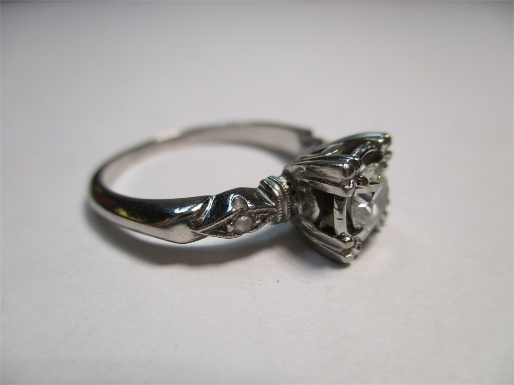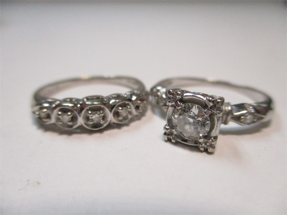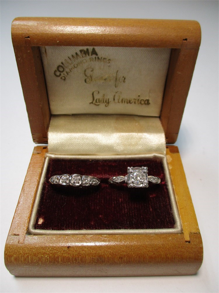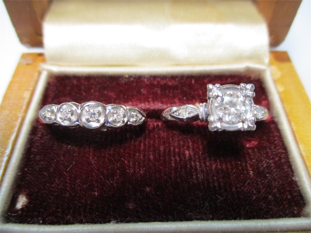 Vintage Diamond & 14K, WG & Palladium Engagement & Wedding Band Set