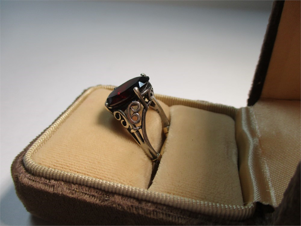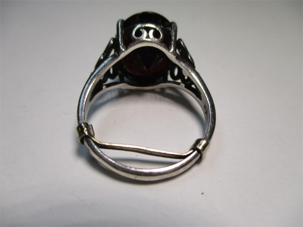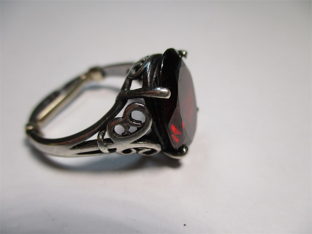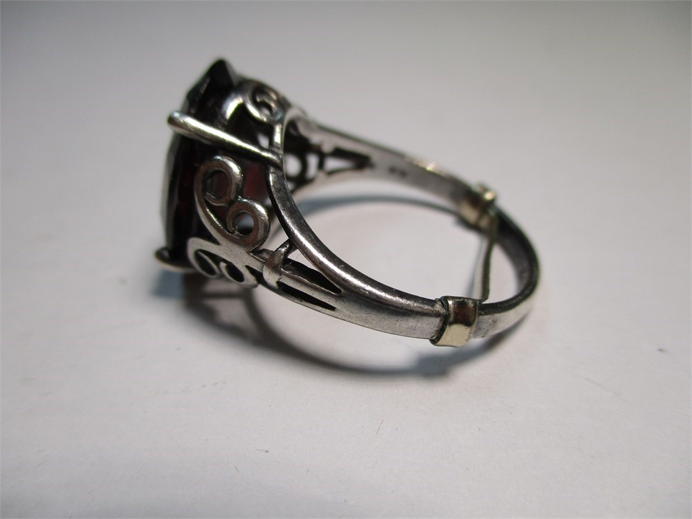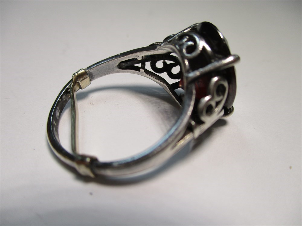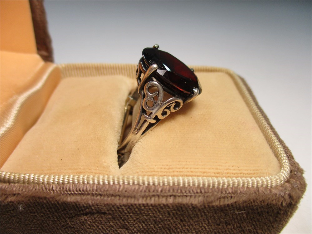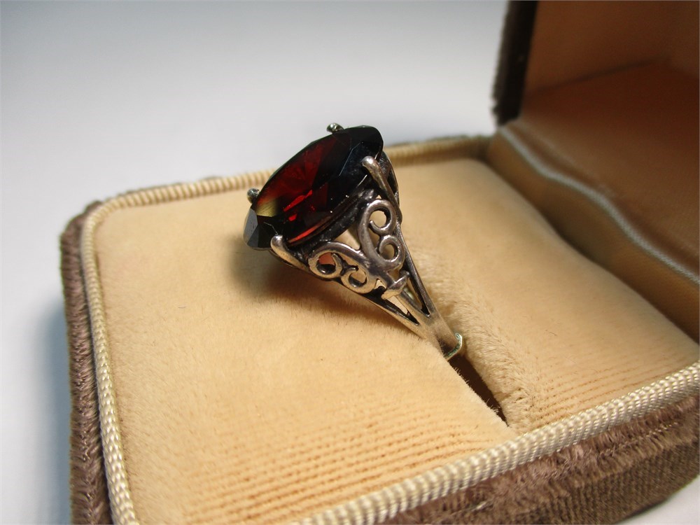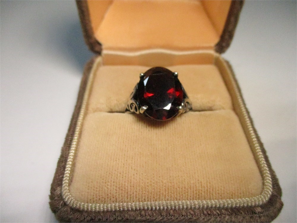Vintage, Large Garnet & Sterling Silver Filigree Ring