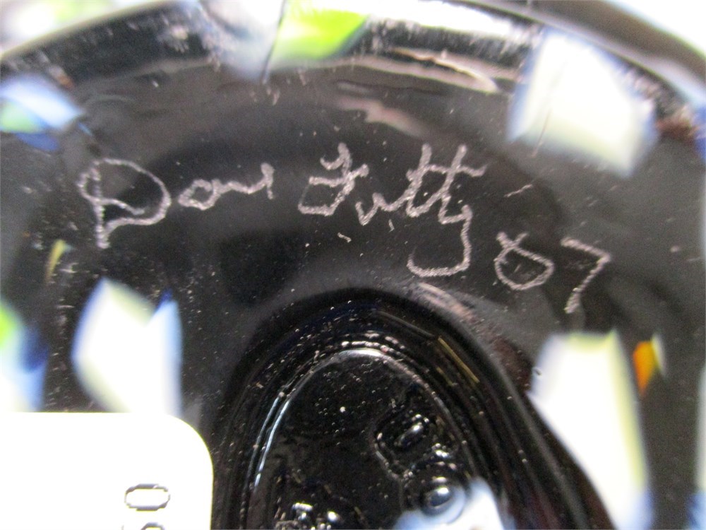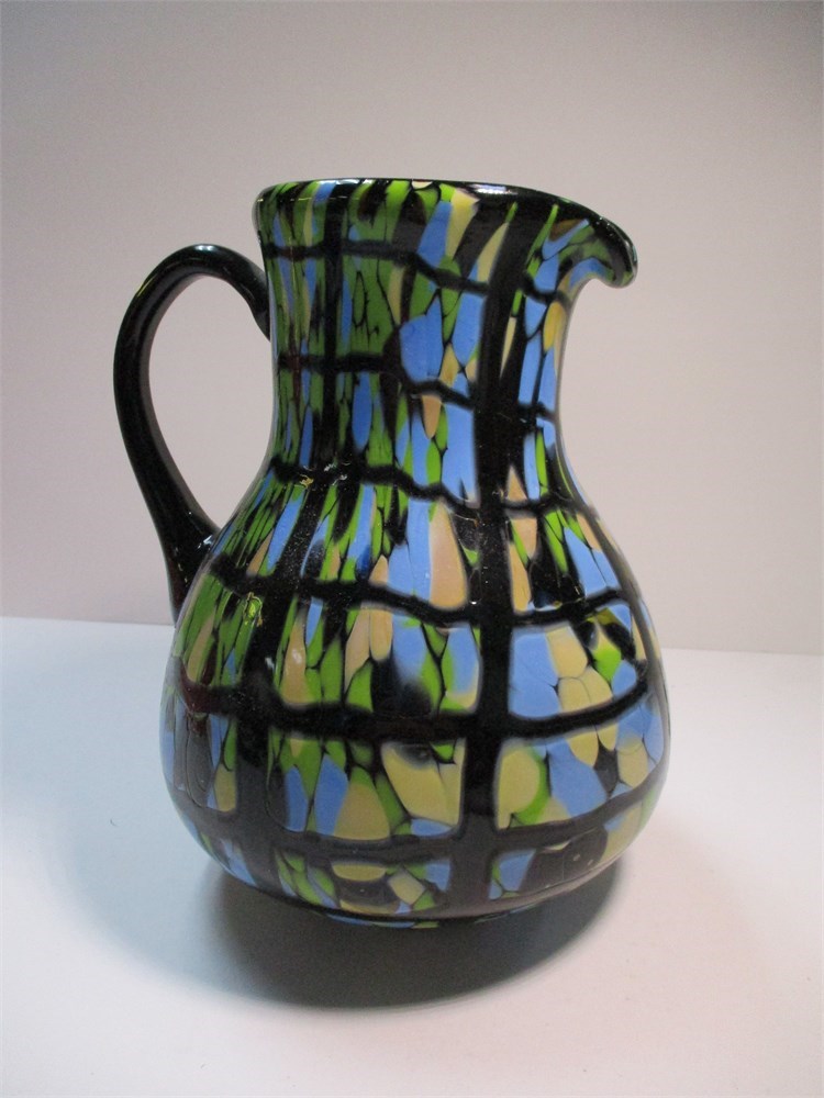 This this a lovely Fenton Topaz Opalescent Vase signed by Dave Fetty '07. In wonderful condition and measures 7" tall x 6" at its widest including handle.