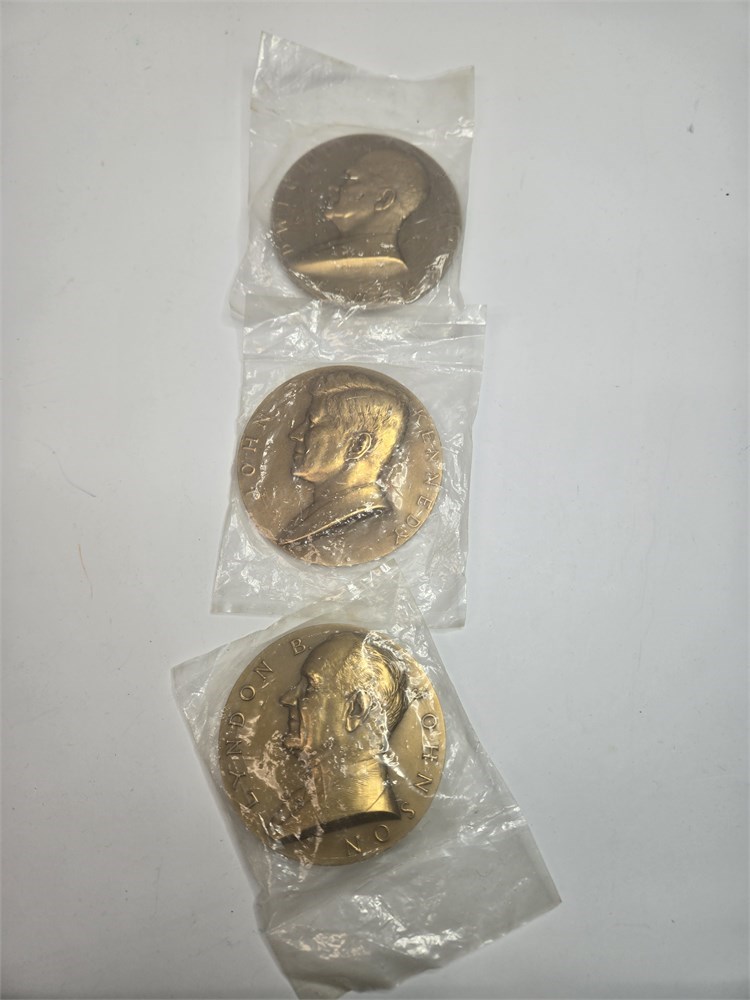3 Presidential Medallions, Lyndon Johnson, John Kennedy,Dwight Eisenhower
