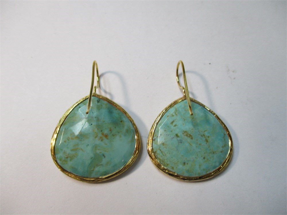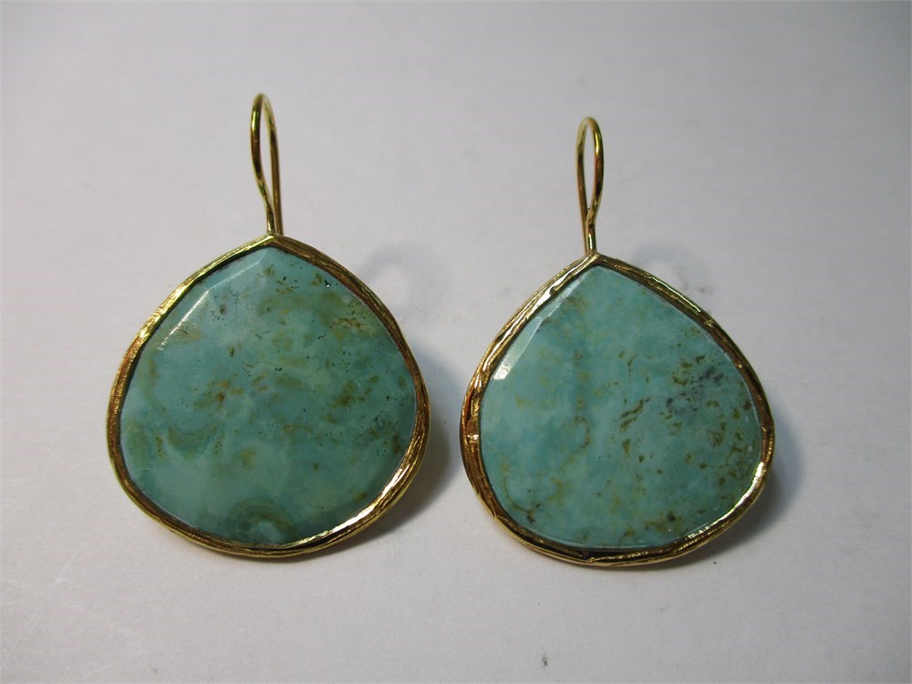 Pair of Tehya Oyama (Turquoise TM), Pear Shape 18K over Brass Earrings