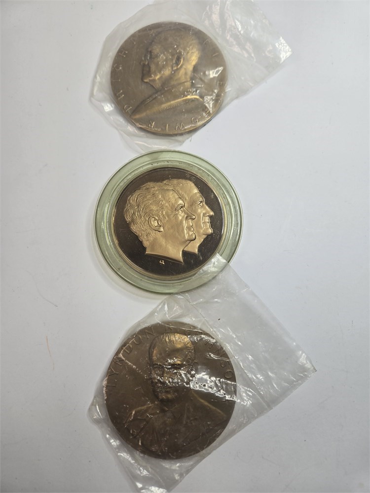 3 Presidential Medallions, Lyndon Johnson, Dwight Eisenhower,Nixon & Spiro