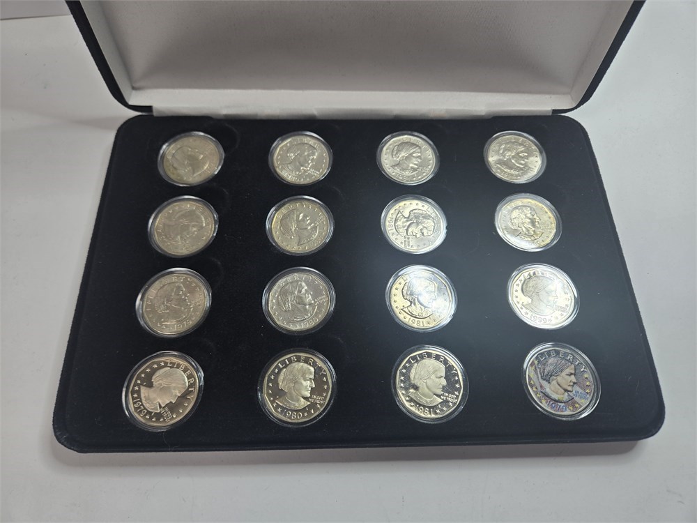 Sixteen Piece Set of Susan B Anthony Dollar Collction,one is enamel enhanced