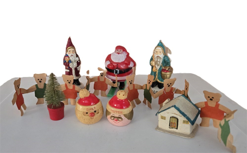Vintage Christmas Lot,Santas,Trees,S/P,paper cutouts, NICE