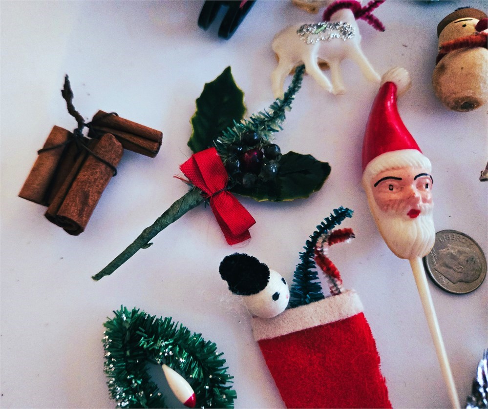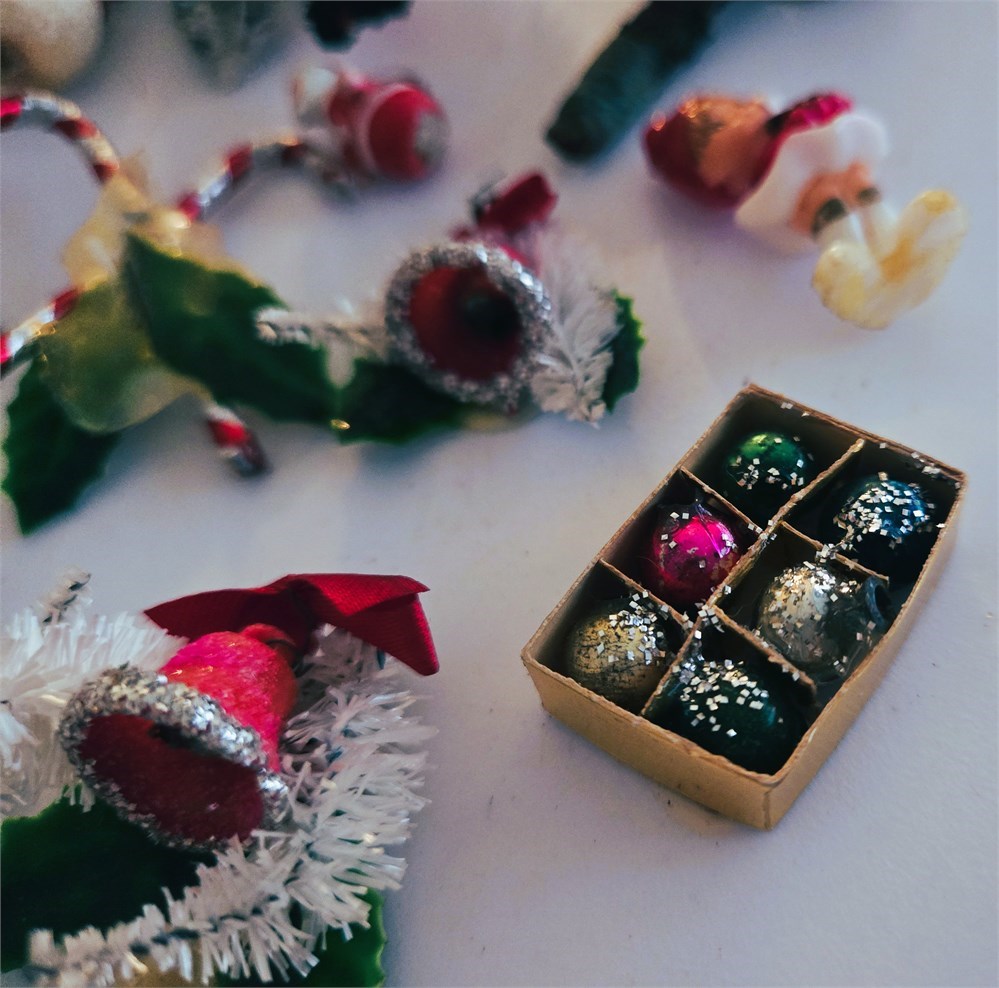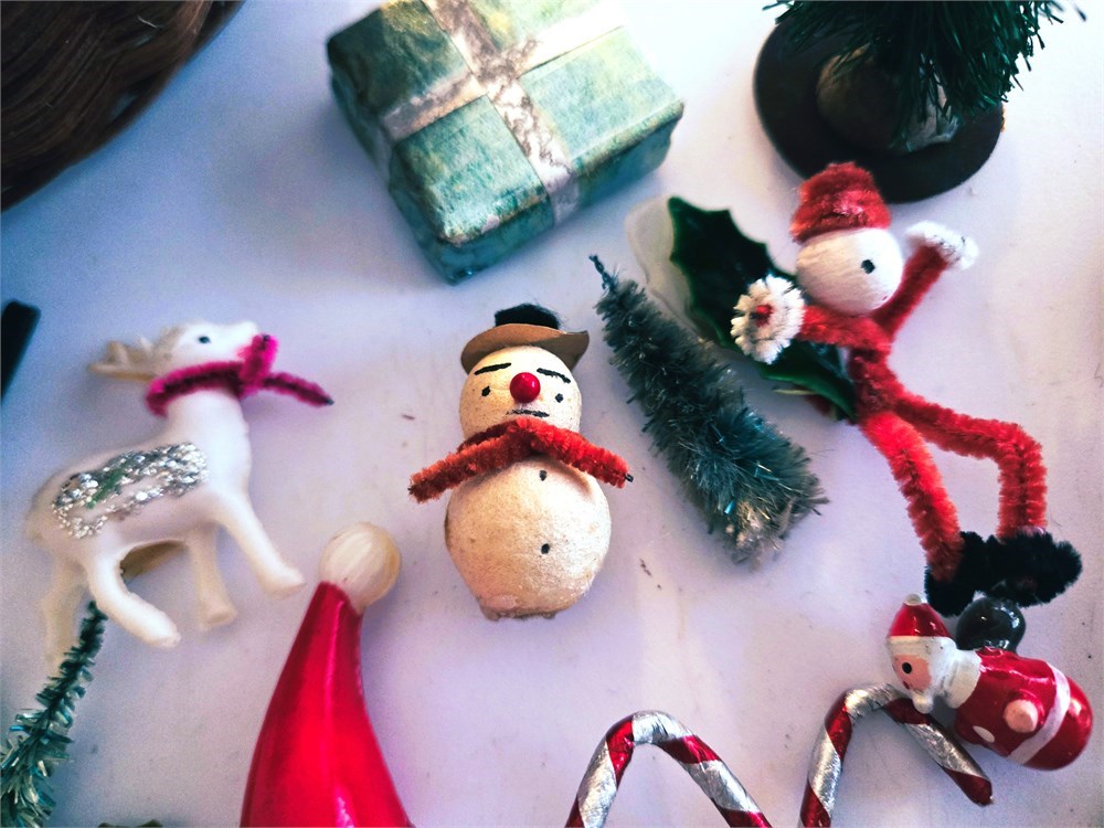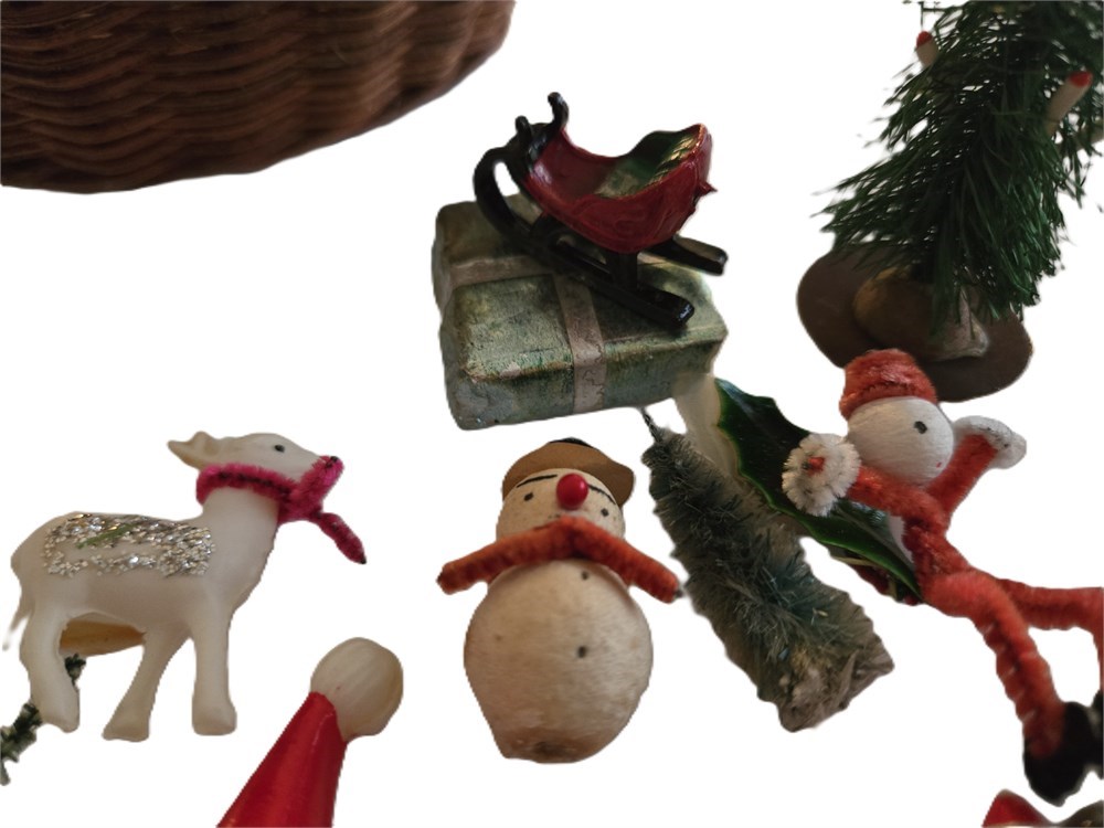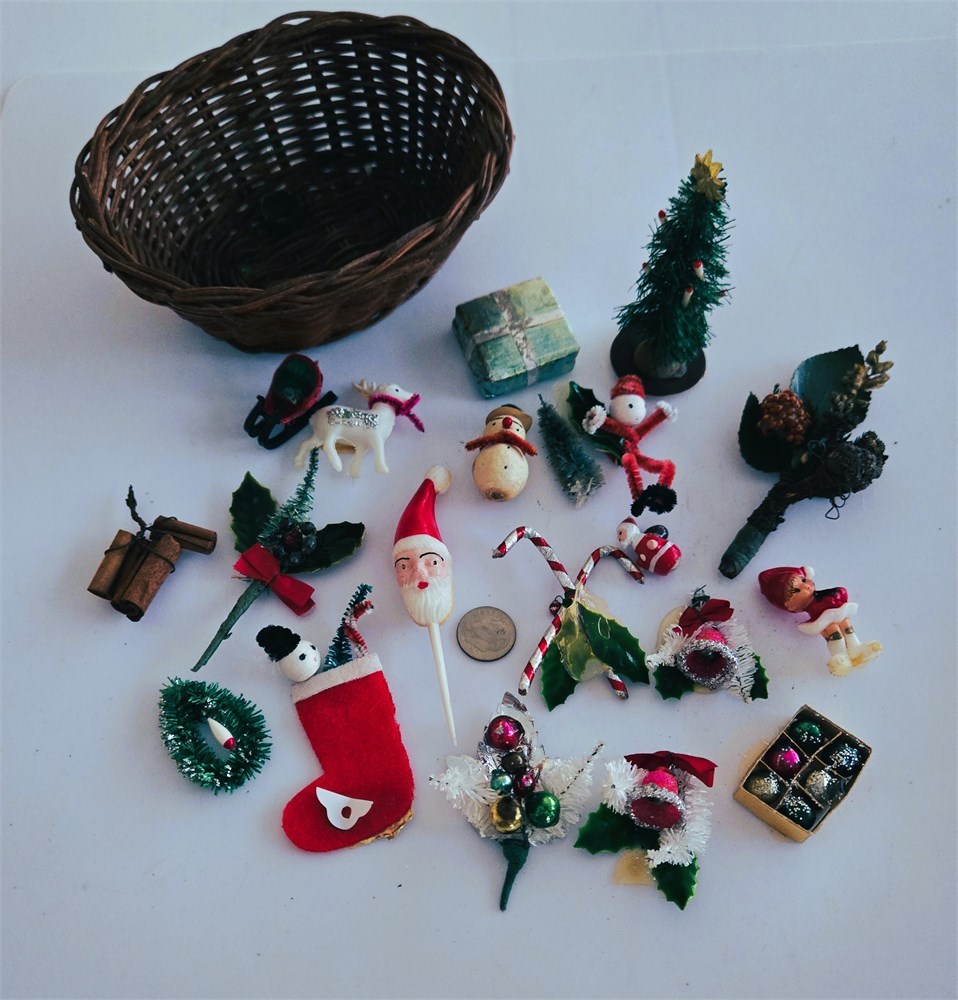 AMAZING LOT of Vintage Christmas MINIATURES ALL UNIQUE COMES w/LITTLE BASKET