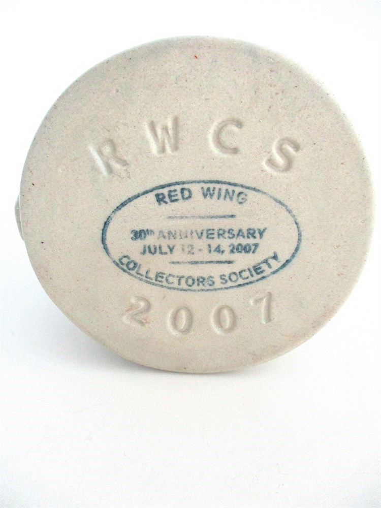 This Great little Stoneware RED WING Commemorative Birch Leaf "Bee Hive" Jug is from the 30th Anniversary, July 12-14th, 2007.  It measures 6" tall x 3.5" across and has its original cork top.  It is in perfect collectible condition!  RED WING in Red Wing Minnesota has a legacy that goes back to the late 1800's.  Their Stoneware pieces are highly collectible.