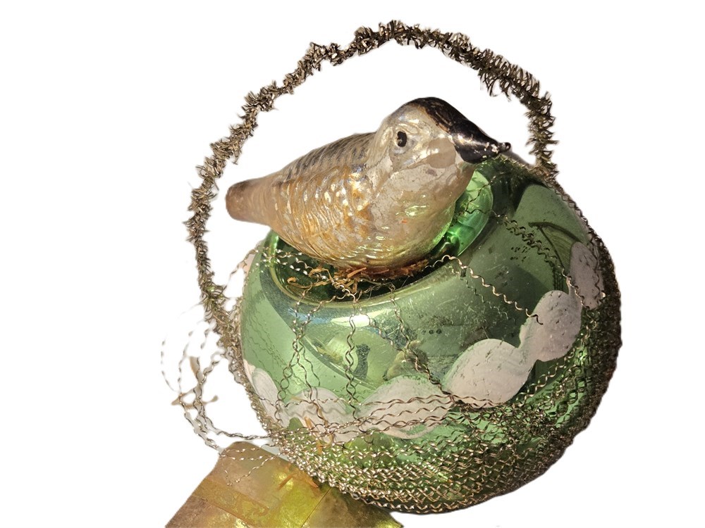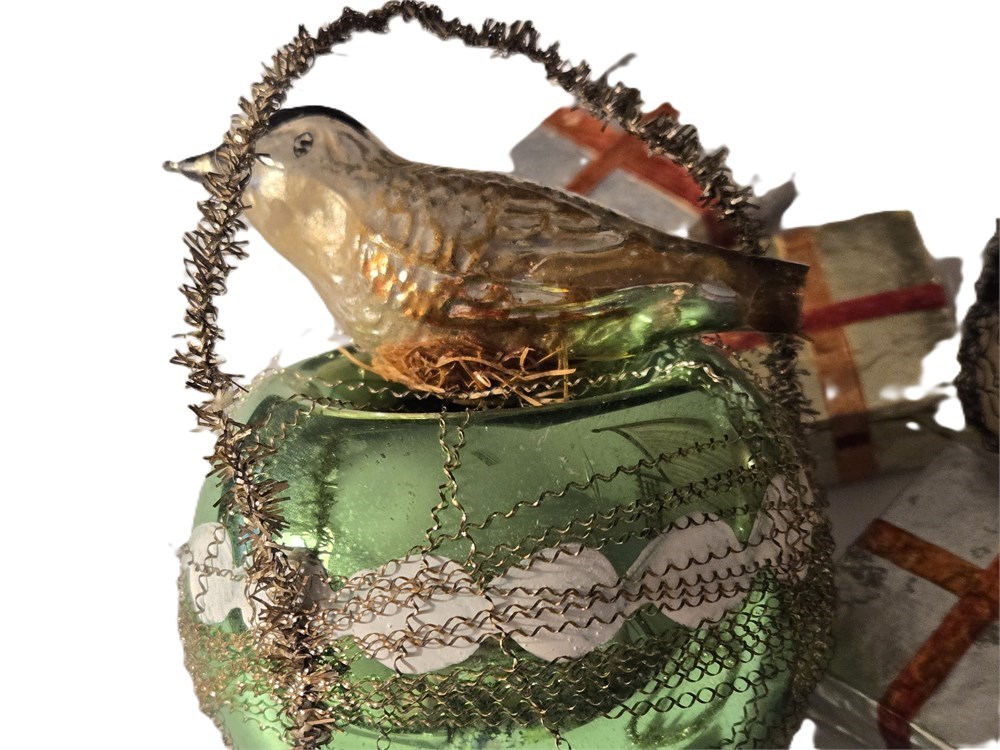VERY OLD PIECES ANTIQUE PIECES. Glass is hand blown, the bird on top of the one ornament has come off and has some glass imperfection by it's missing tail feathers. No cracks or chips on any of the pieces. The long clear glass one is missing an end.