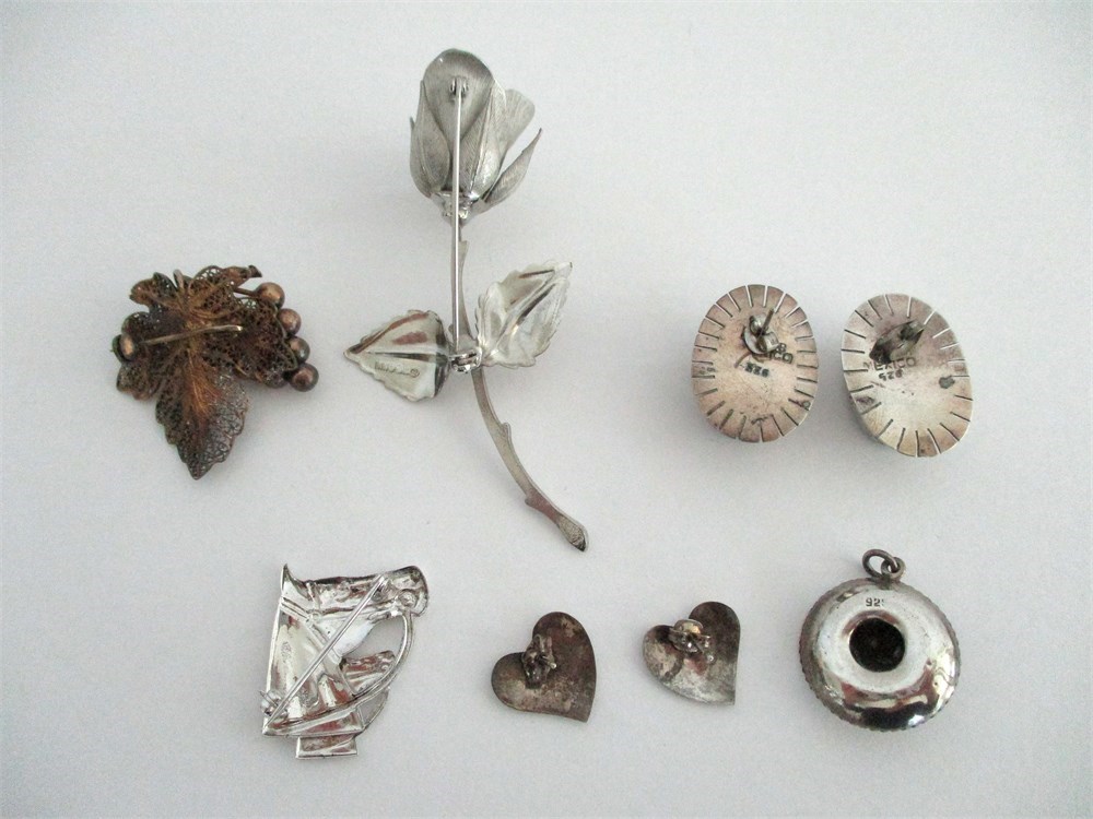Vintage Sterling Jewelry Lot, Earrings & Brooches