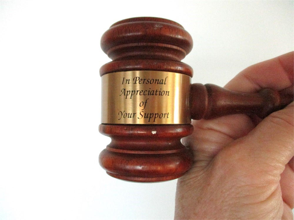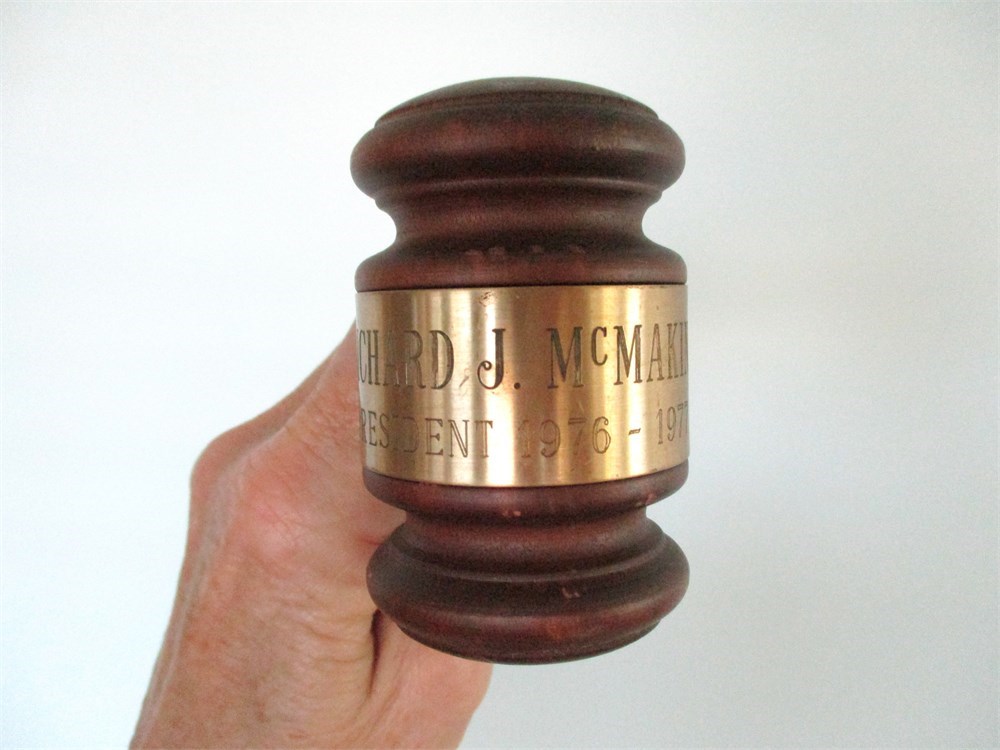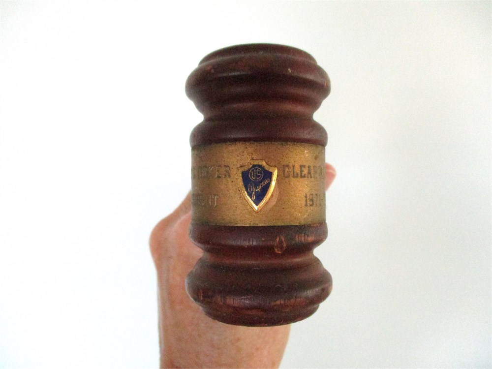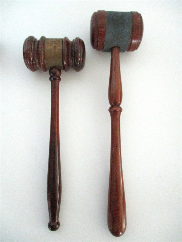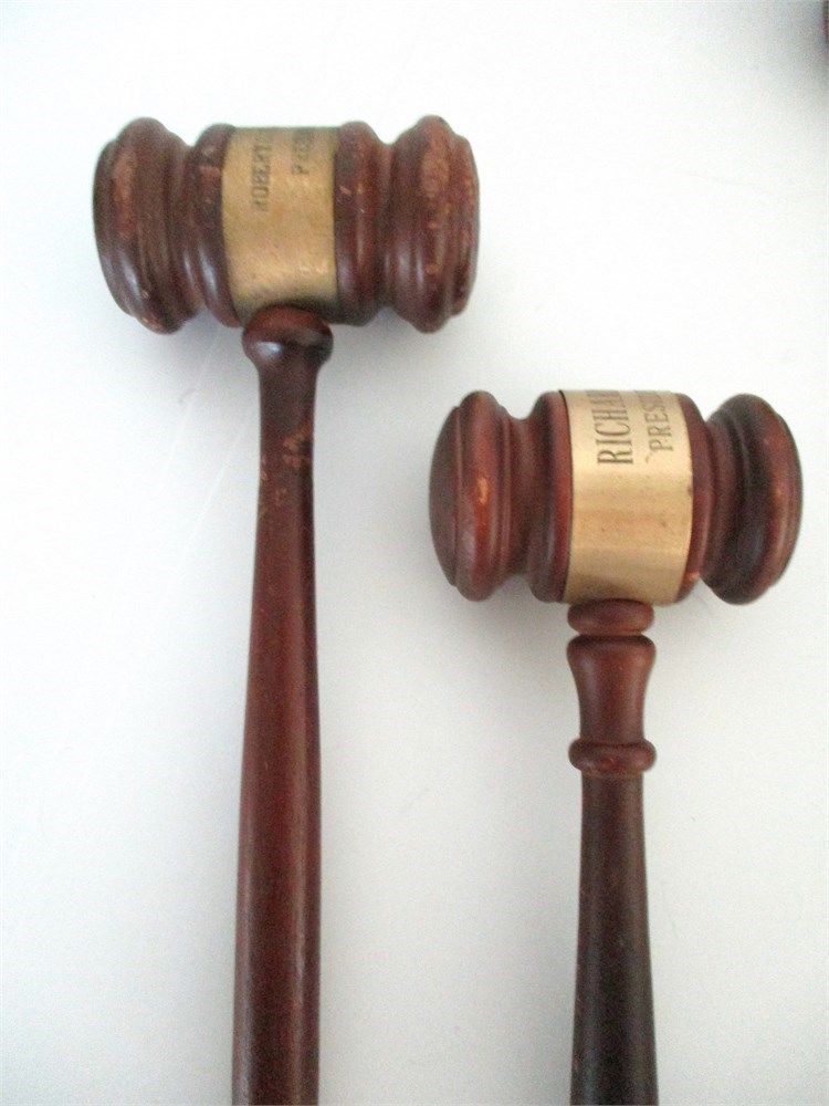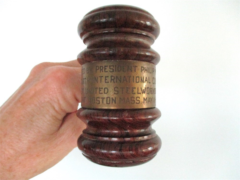 This is a wonderful 8 piece collection of Antique & Vintage Wooden Gavels and Mallet, one dating back to 1948.  Three of the Gavels are presented to individuals in appreciation of their service.  One is presented to the President of United Steelworkers Boston MA 1948.  The others are courtroom gavels, one miniature gavels and one very large Mallet.  All of them are in wonderful vintage condition with only normal age related wear.  The large Mallet has two splits in the wood but still in very good condition.  They range is sizes from 4" long to 12.5" long.