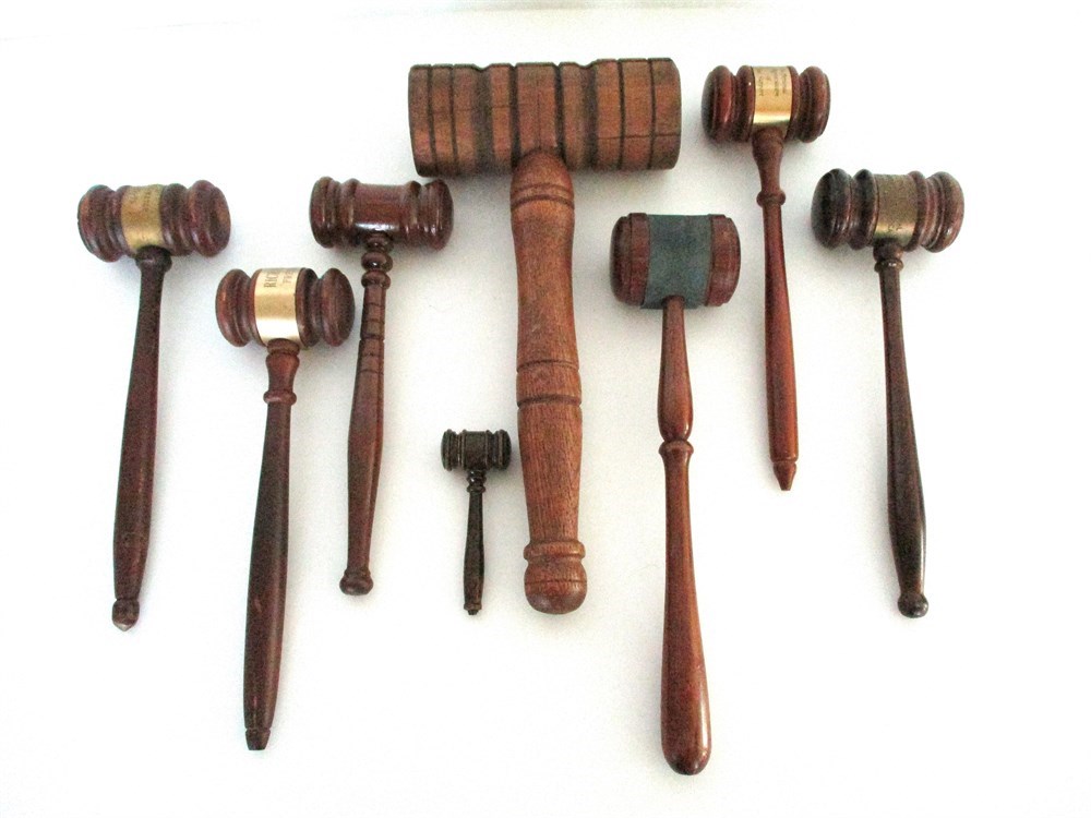 8 Piece Lot of Antique & Vintage Gavels & Wooden Mallet