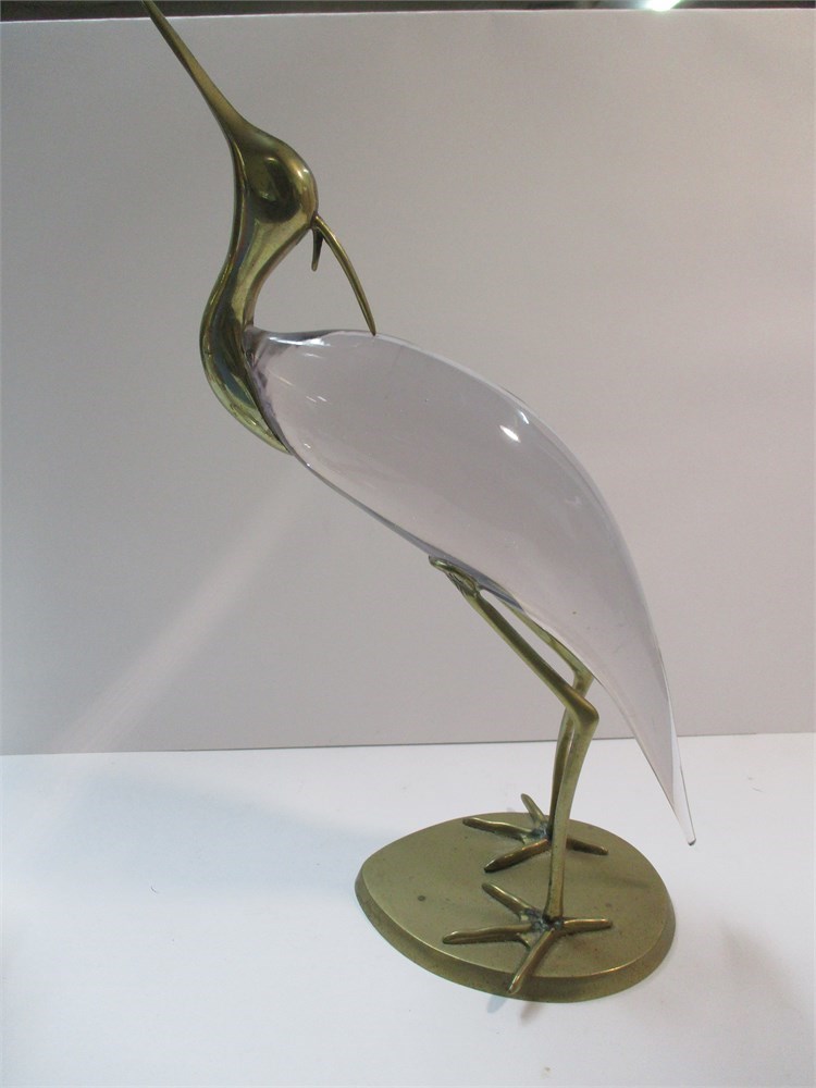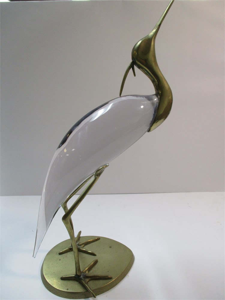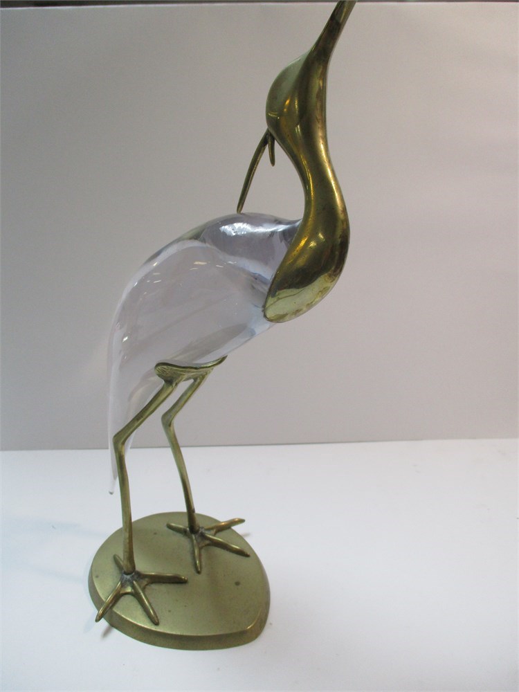 Lovely MCM piece.  Wonderful patina to the brass and no issues with the crystal.  It stands 12.5" tall & approximately 7.5" wide.
