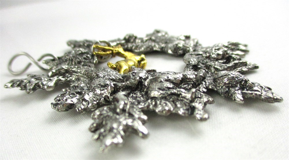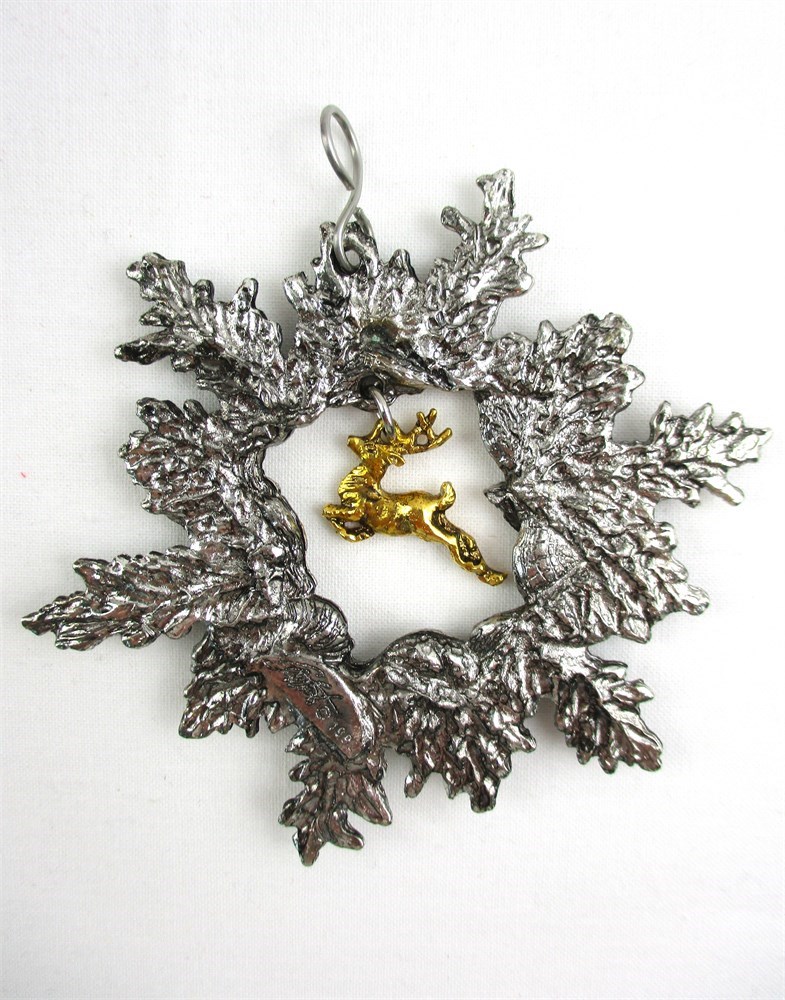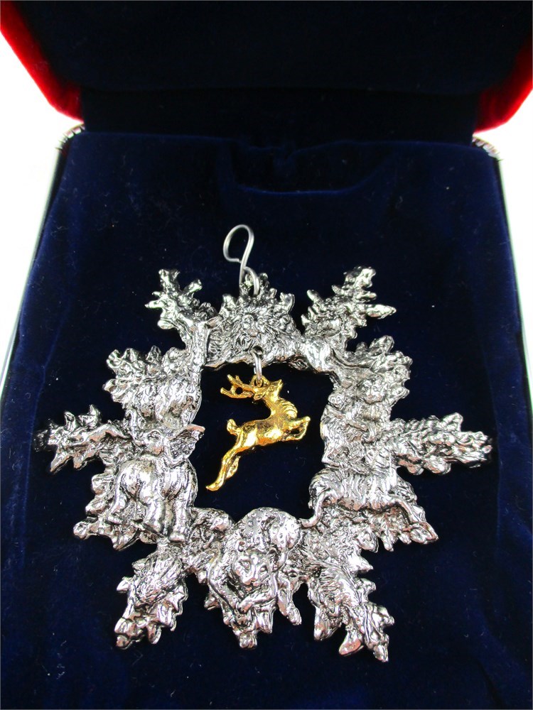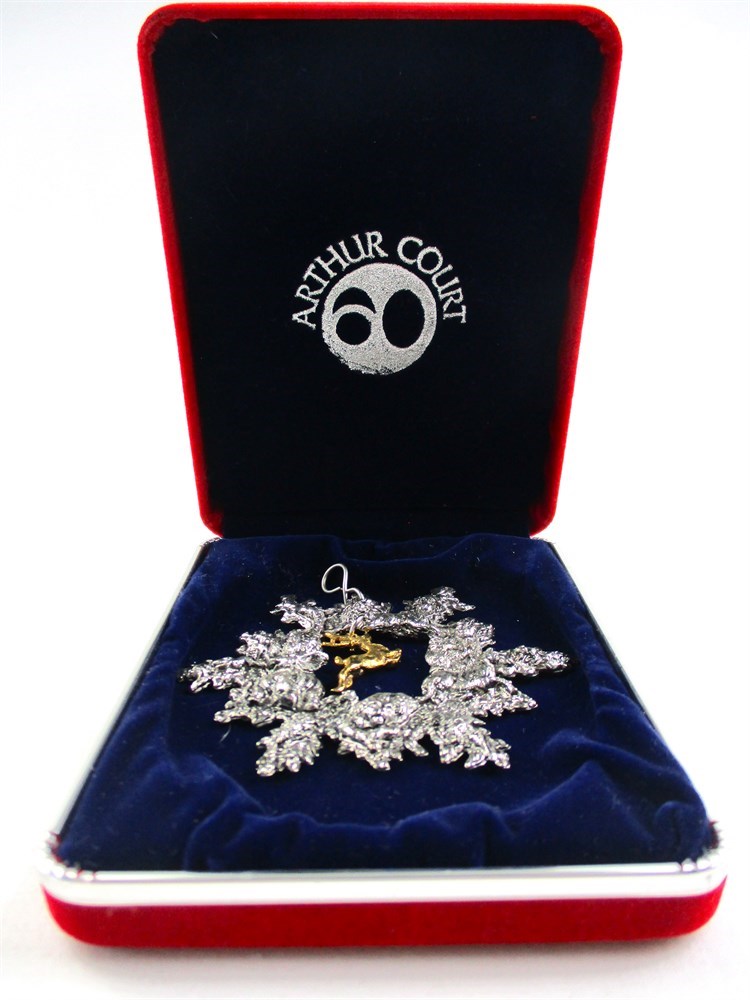 A Beautiful vintage 1992 Arthur Court Wild Safari Christmas Ornament with a Gold Stag hanging from the center.  It is in wonderful vintage condition and comes in its original box.  Wonderful gift...Think Christmas!