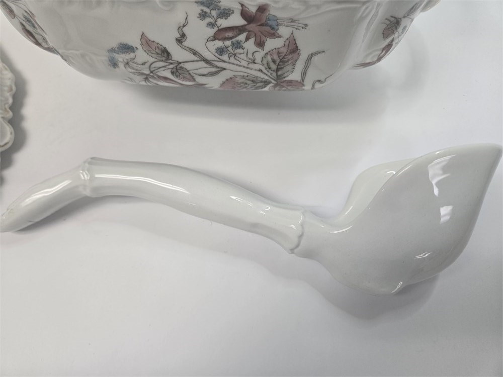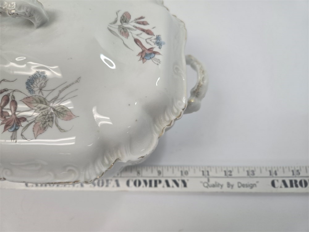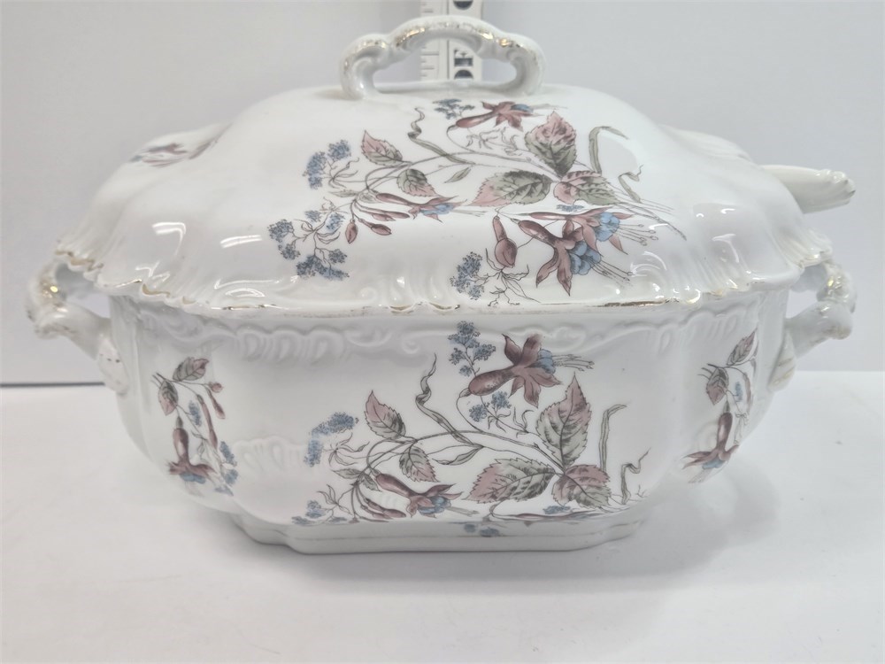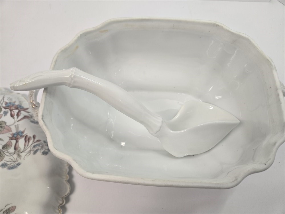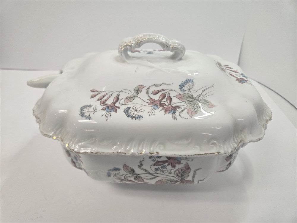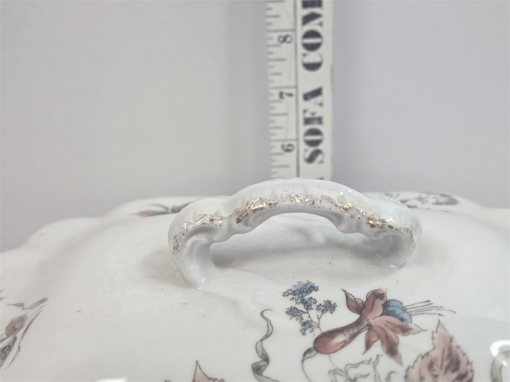 Antique Victorian Porcelain Covered Tureen – Floral Transferware, c. 1880–1905