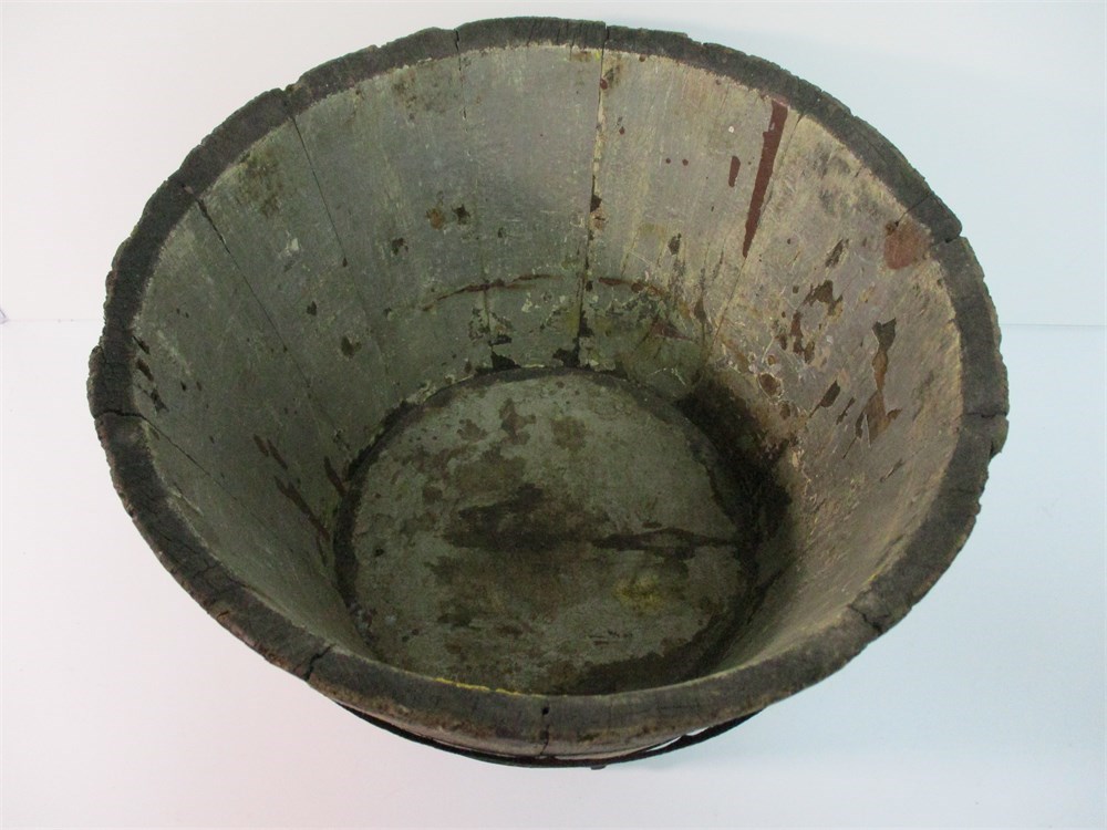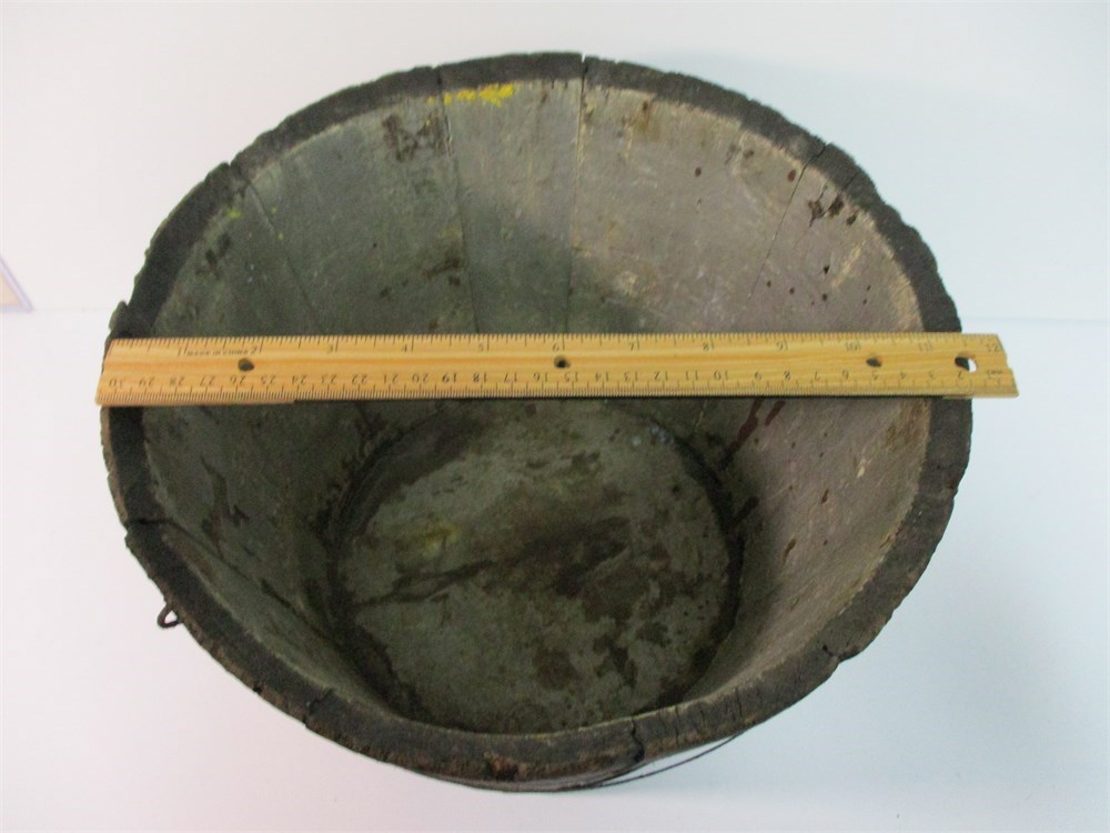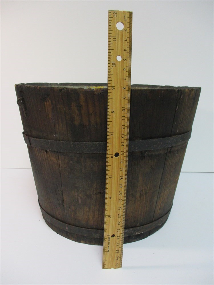 Antique Wooden Stave Bucket with Iron Bands (19th–Early 20th Century)