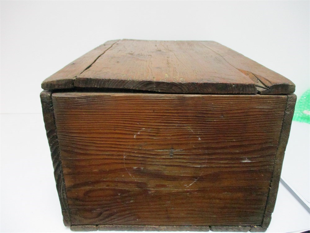 • Handmade construction with visible square nails or early cut nails (likely on other sides)