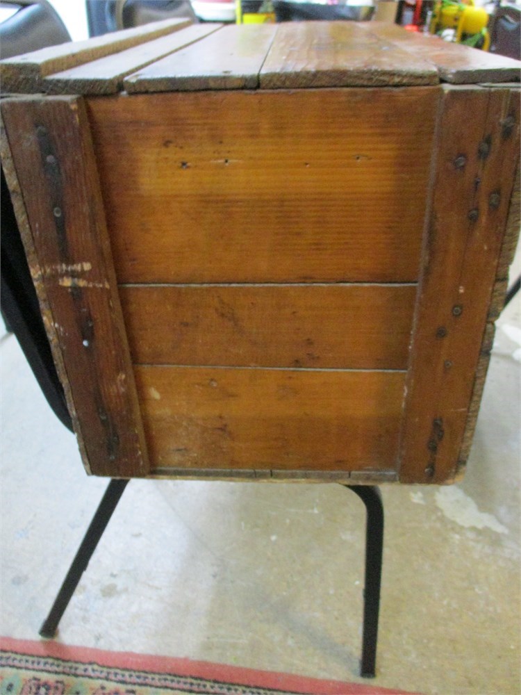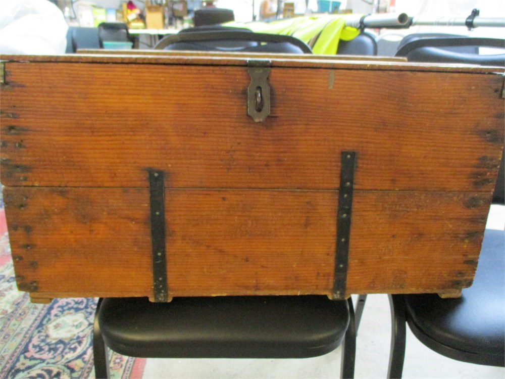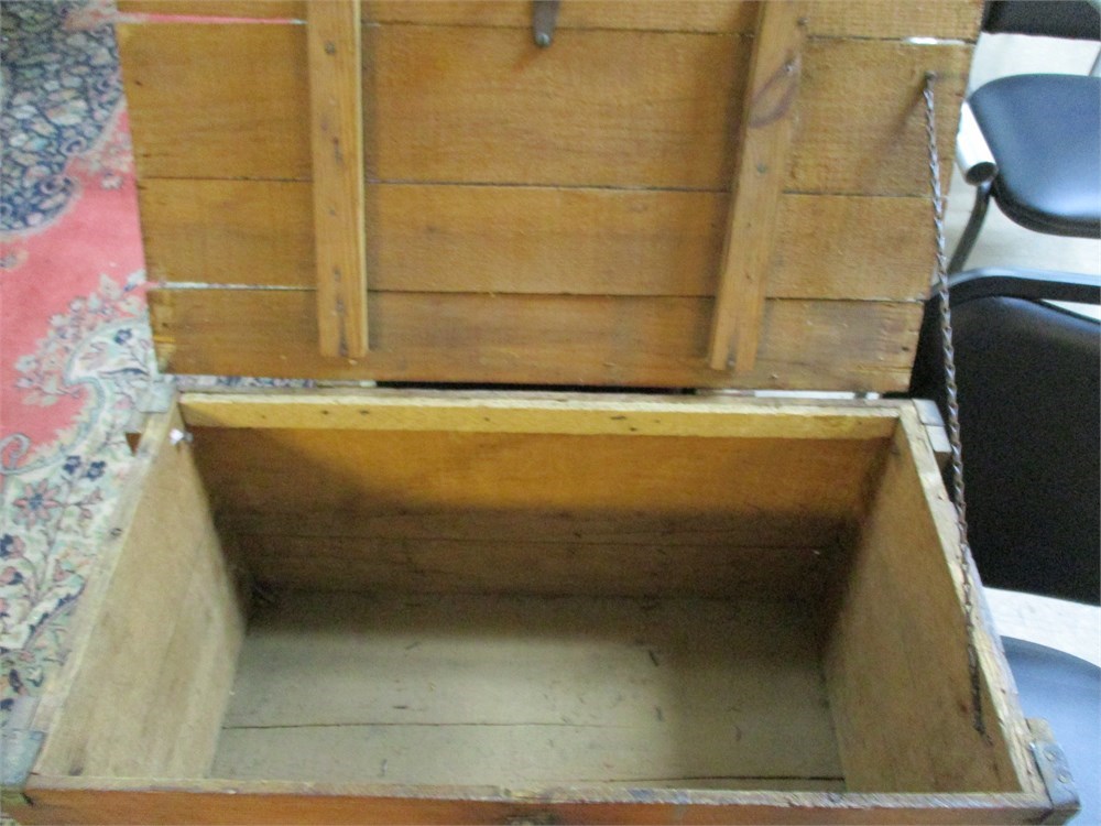 Antique Wooden Storage Chest / Tool Chest with Iron Strap Reinforcement