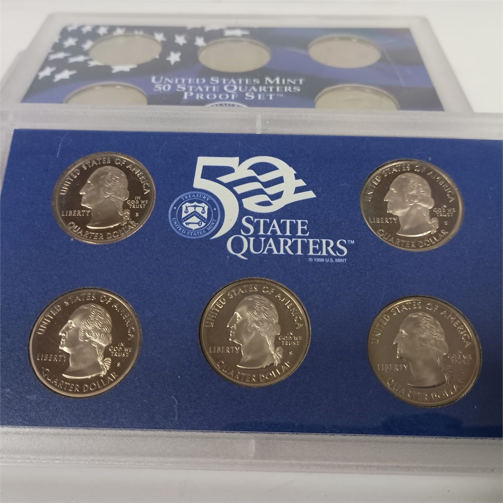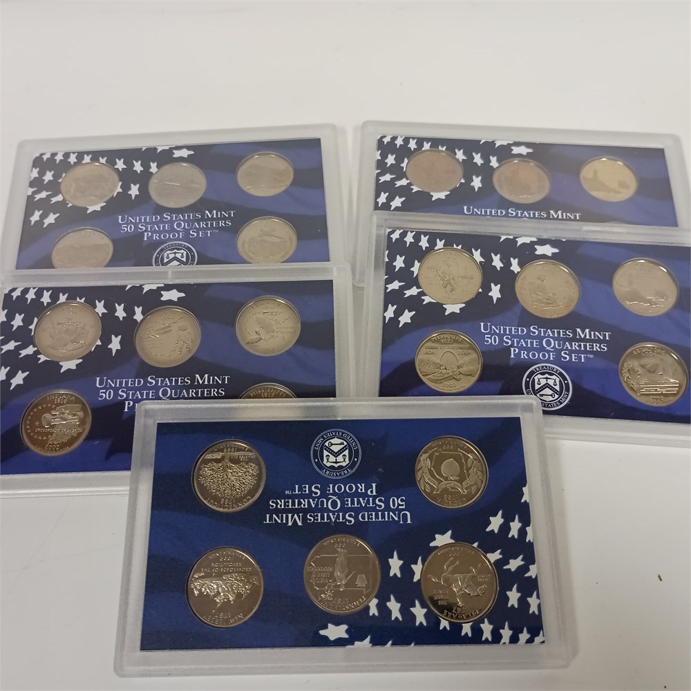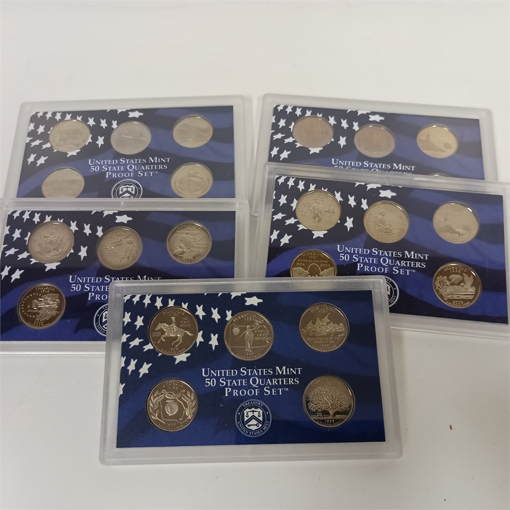 25 proof quarters encapsulated in hard case.  1999, 2002, (2) 2003, 2006