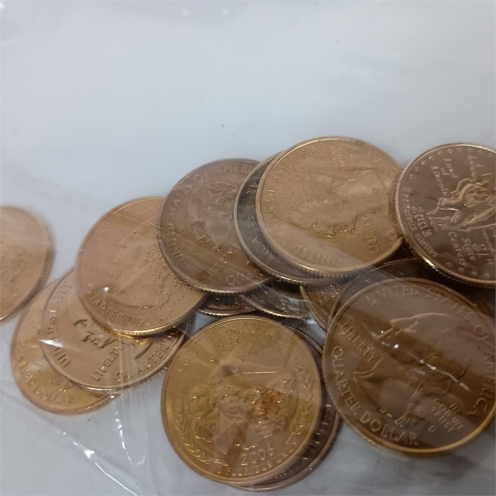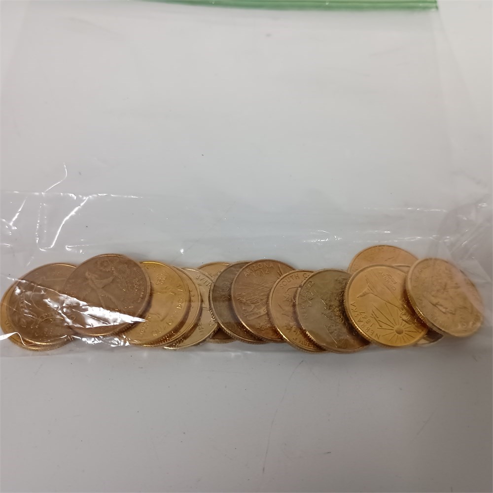 Look like they came from enhanced sets as they are all gold plated.  15 quarters, various states.