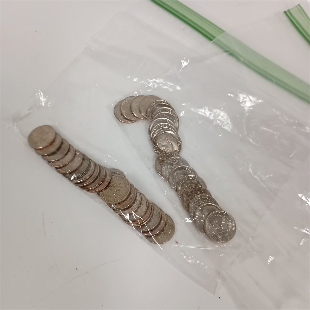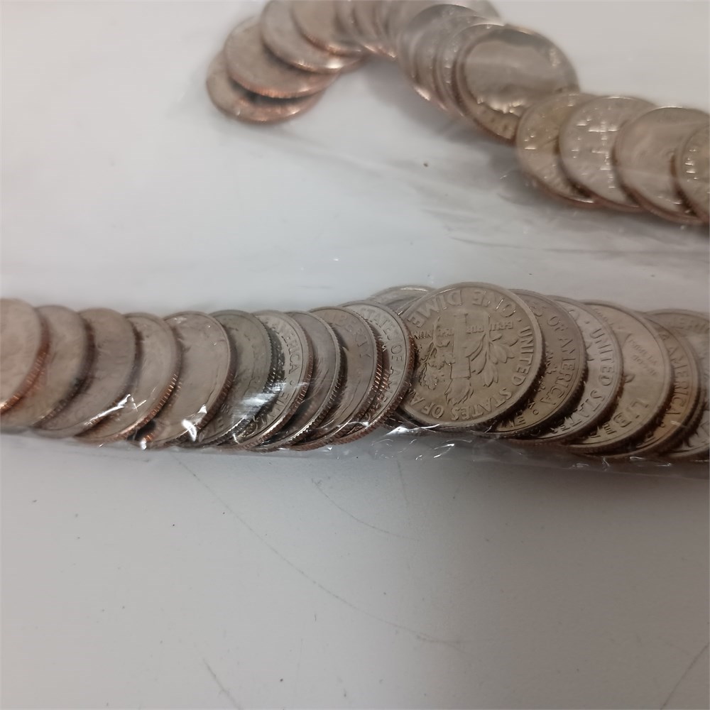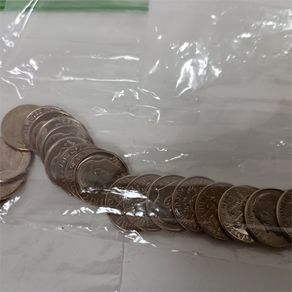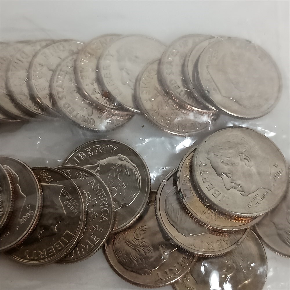Interesting group of coins that look like they came from proof or mint sets.  There are 41 dimes.  I see 80's, 90's, early 2000's.