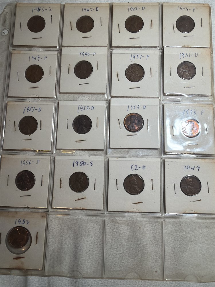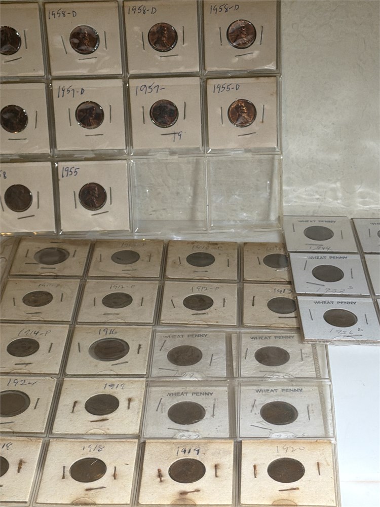 Carded wheat pennies, large assortment 1955 , 1914,, 1918, 1952 D’s, 1944S, 1945S, 1947S, and lots more