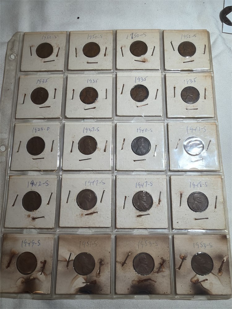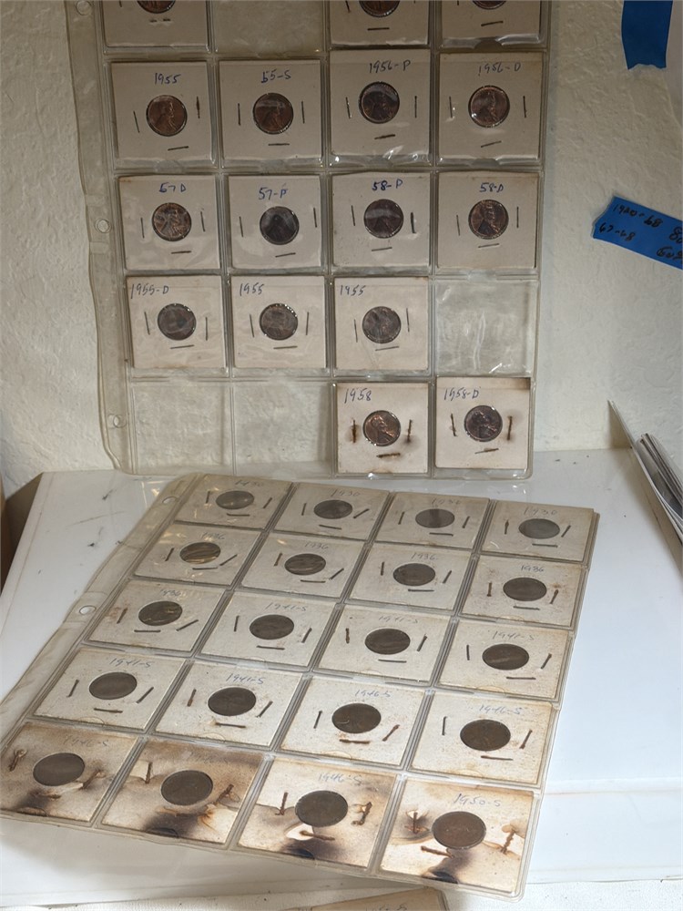 Carded wheat pennies, large assortment 1955 , 1914,, 1918, 1952 D’s, 1944S, 1945S, 1947S, and lots more