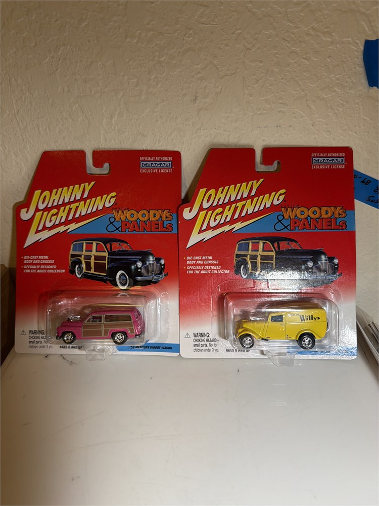Johnny lightning custom Woody and panels 50 Mercury Woody wagon and 33 woollies panel van once pink and brown one yellow