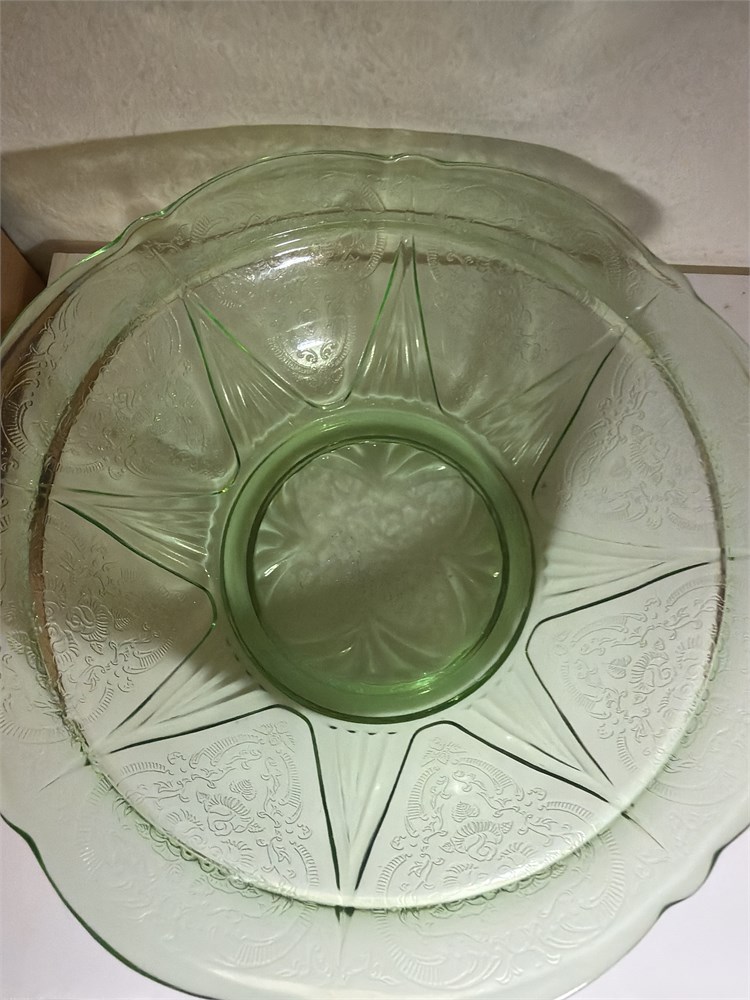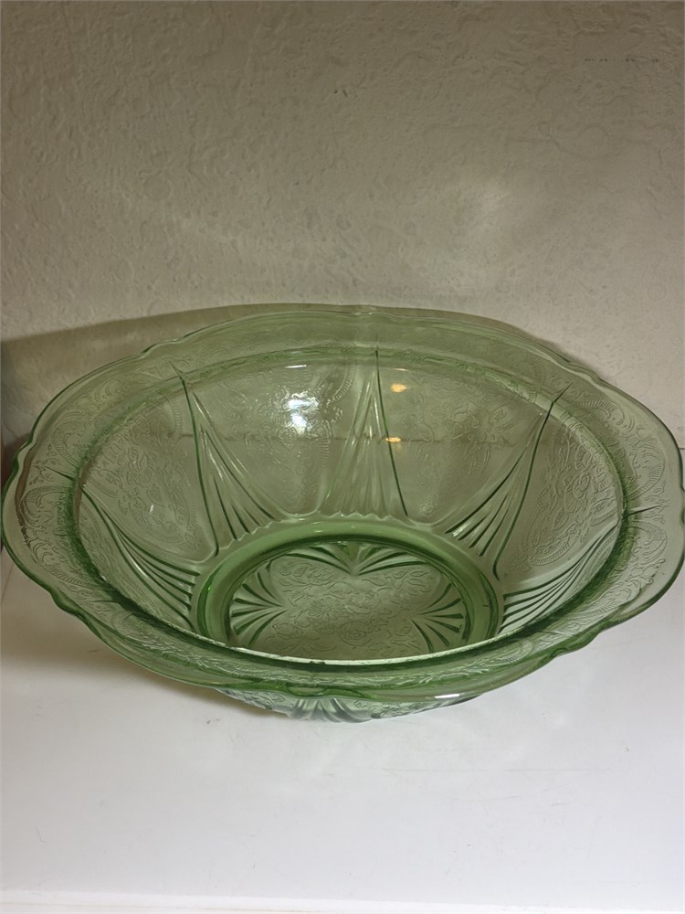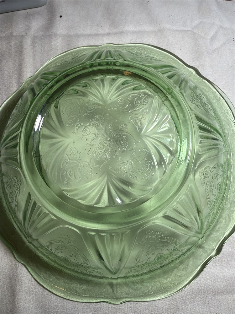 Vintage URANIUM Glass Hazel Atlas Green Deprssion Royal  10 inch bowl by 3 inches