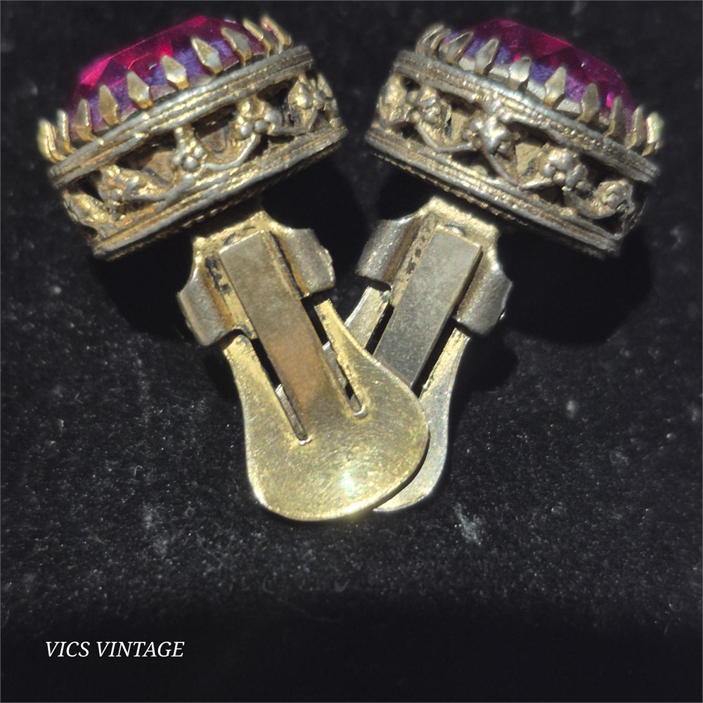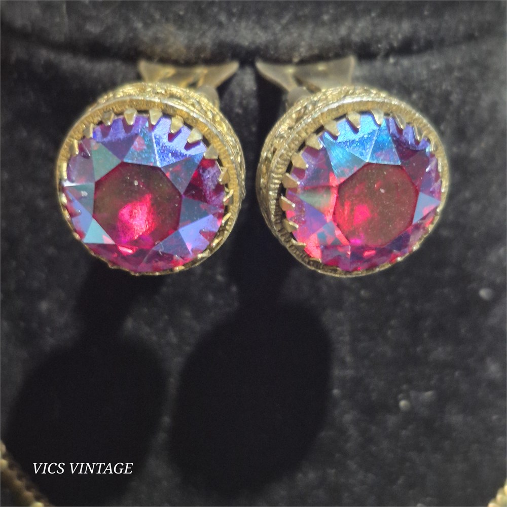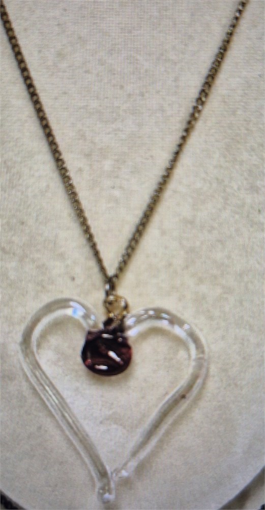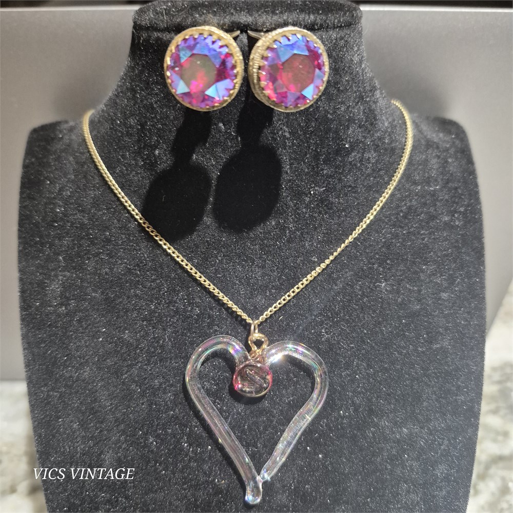 GLASS HEART necklace & matching ruby vintage earrings [VC]