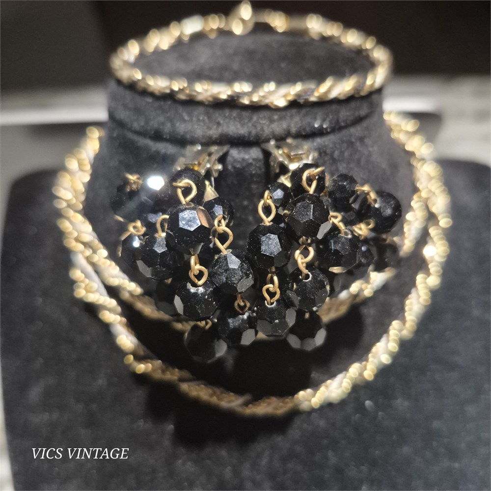 Vintage Black / Gold twist Necklace & Bracelet + Earrings [VC]