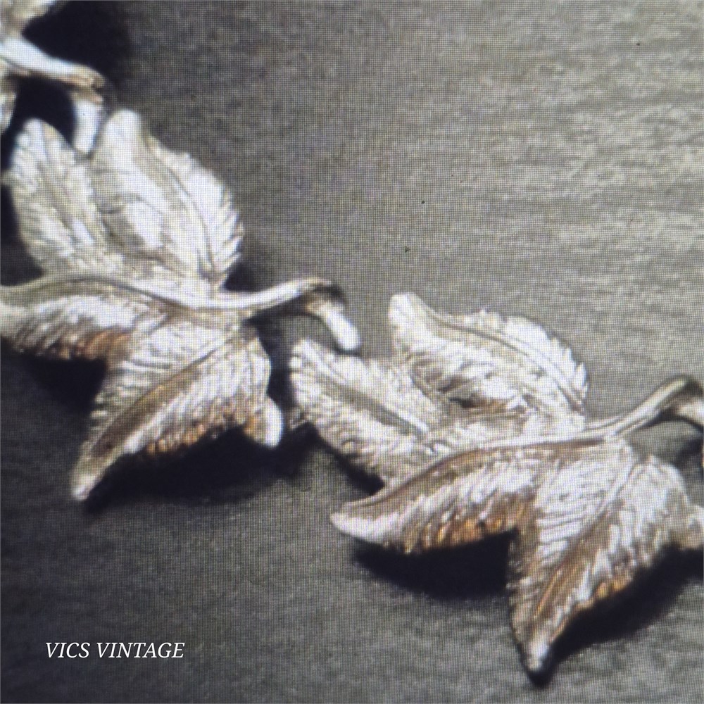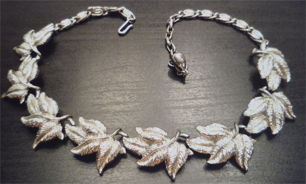 *RARE* VINTAGE ESTATE SIGNED MARVELLA SILVER TONE LEAF FLORAL 17" NECKLACE