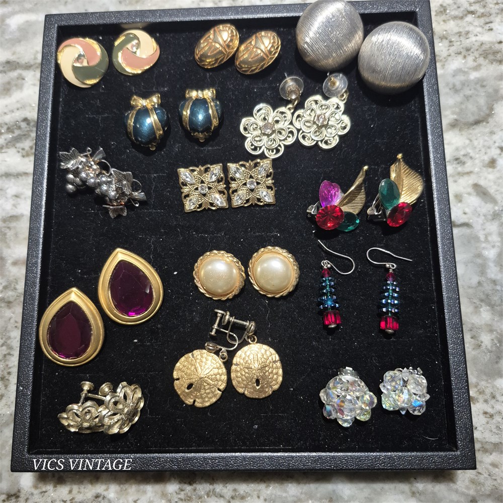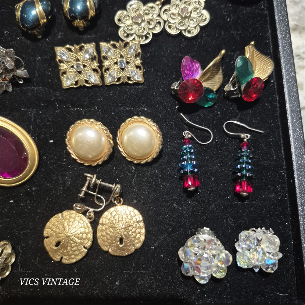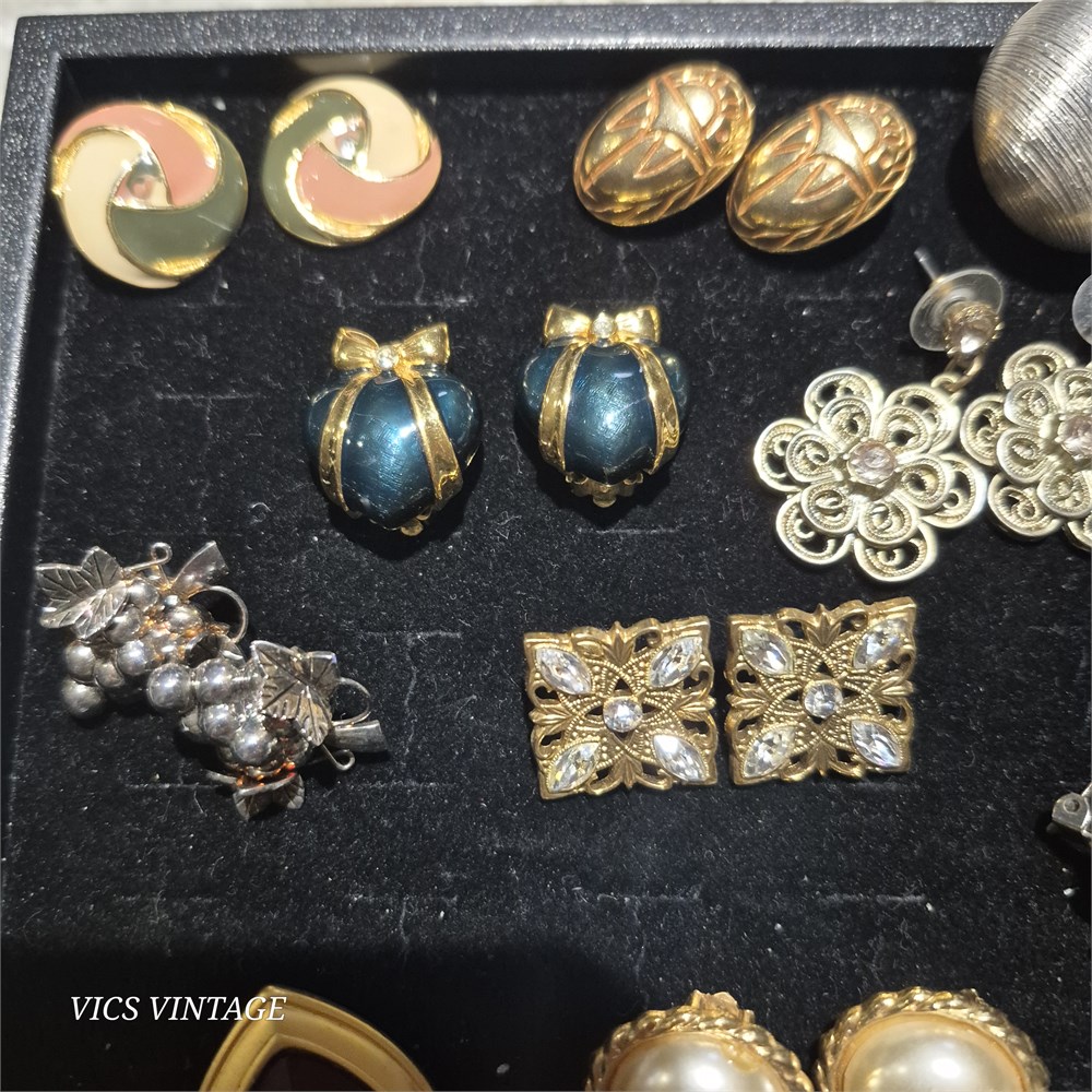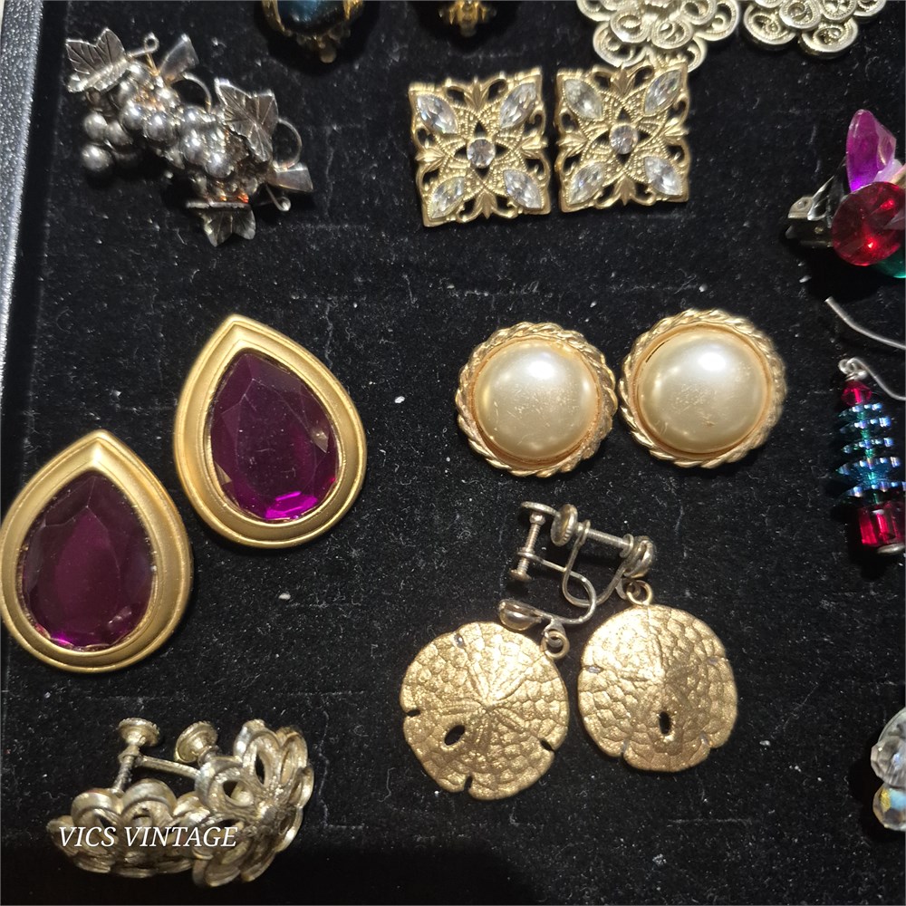 Tray of Vintage EARRINGS ~ clip ONS // pin / some marked