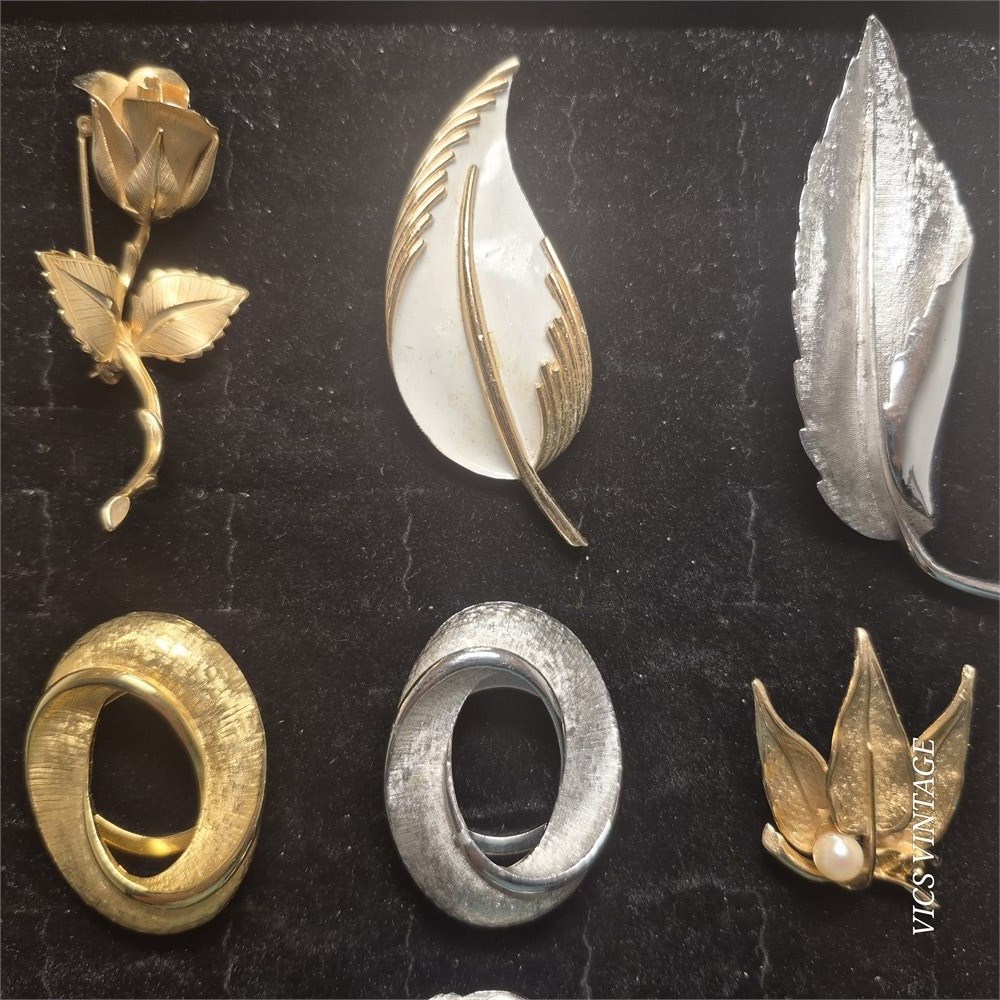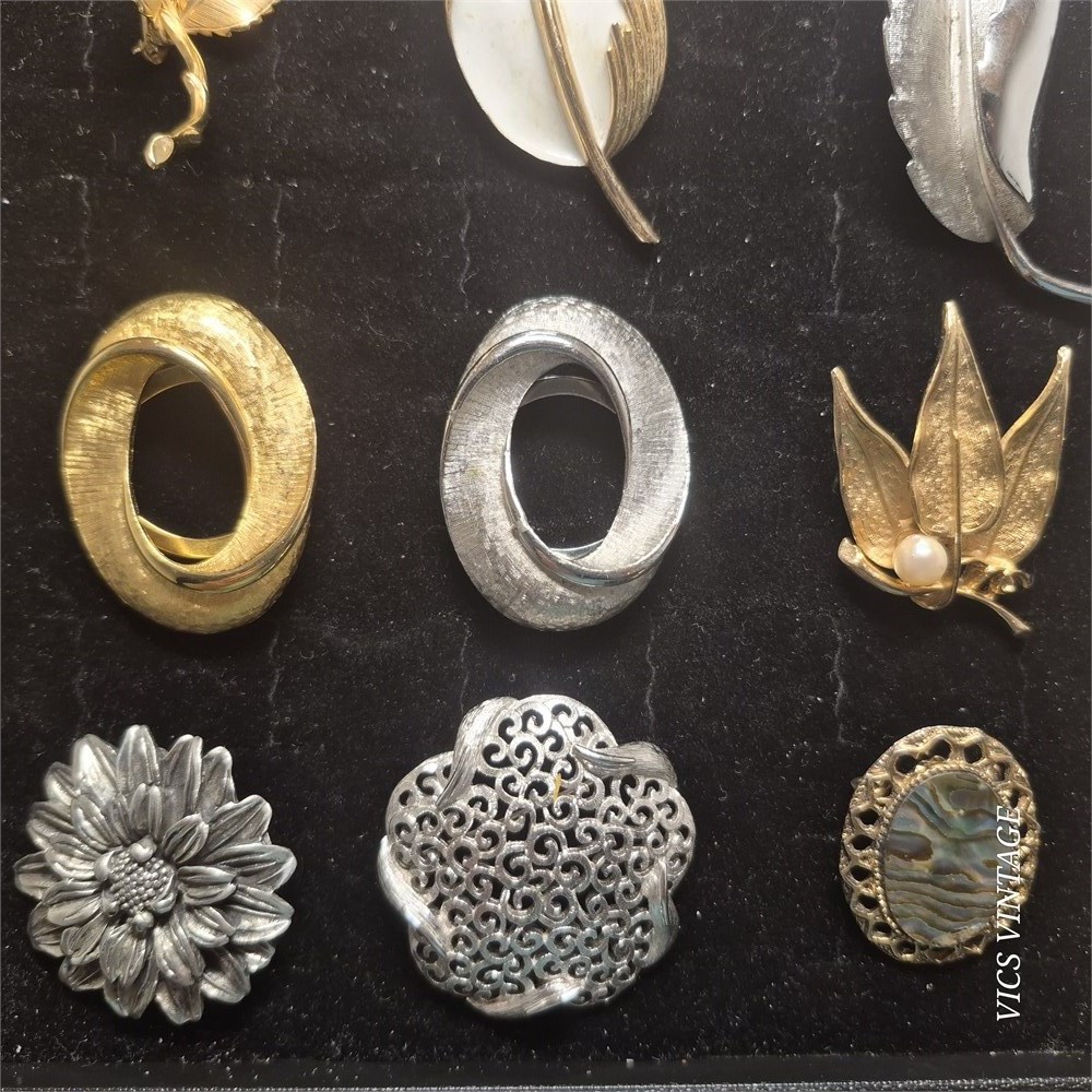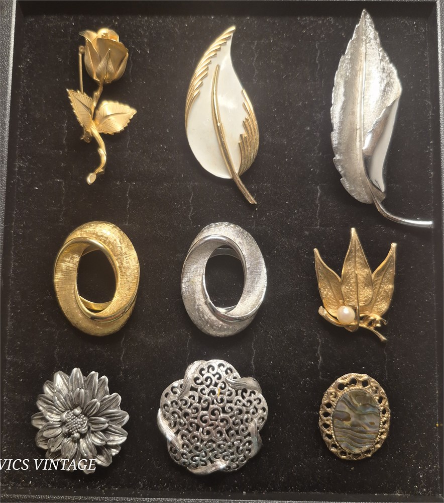 Vintage lot Name Brooches ~ Trifari/Monet/ SAF/ Coro @9