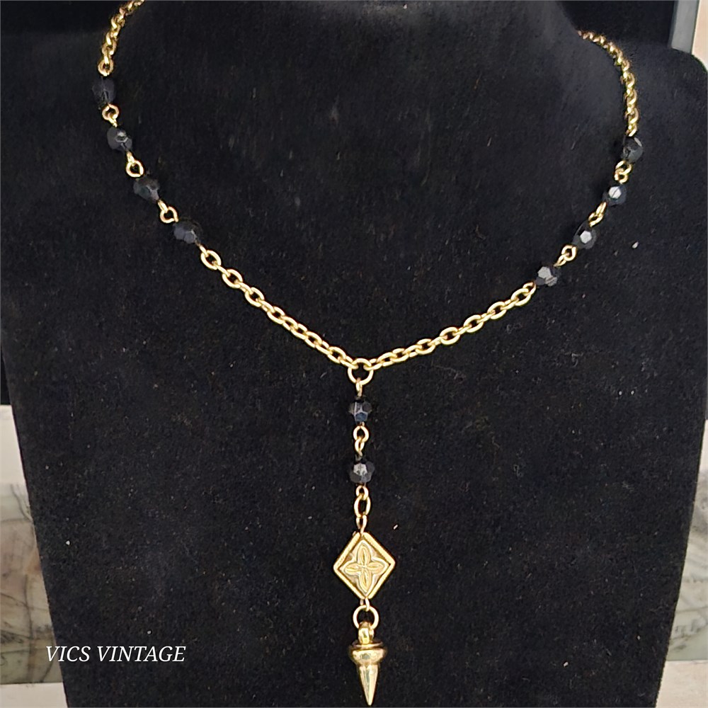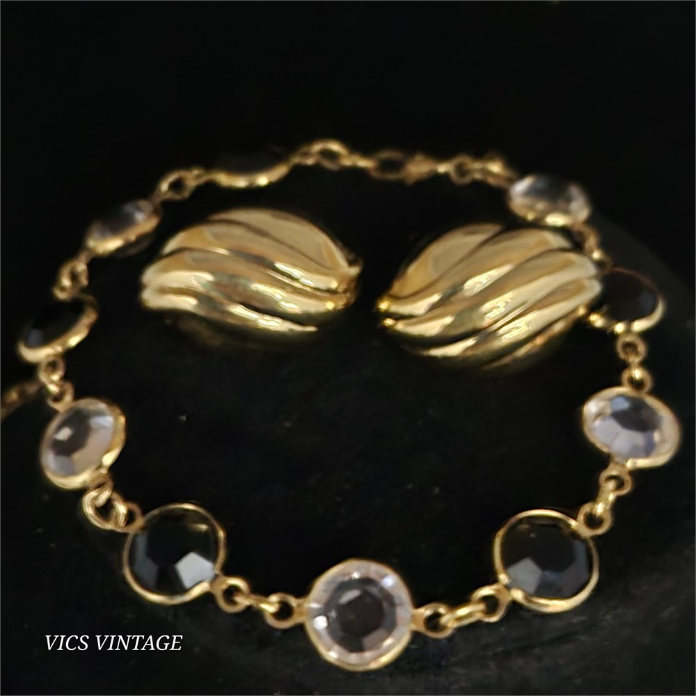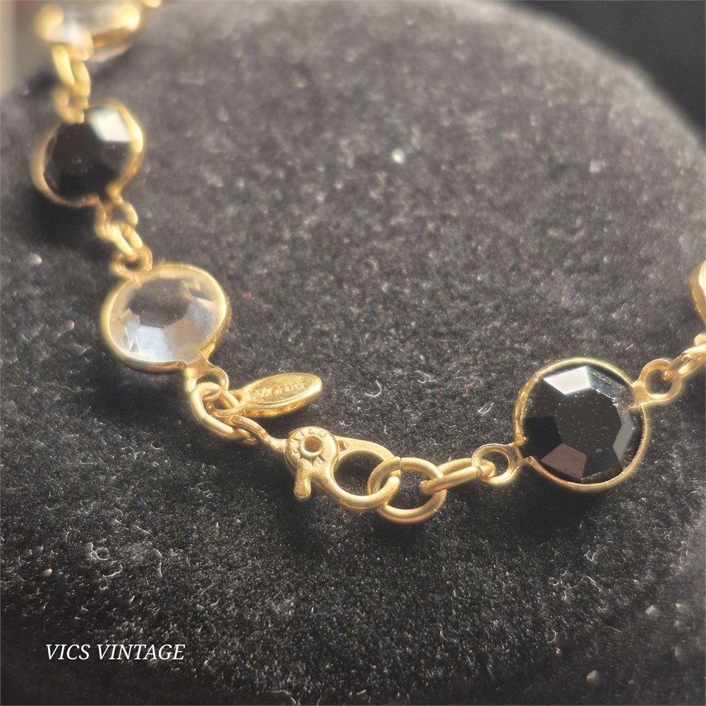 > Bracelet is clear & black stones on Gold chain ~ marked tag