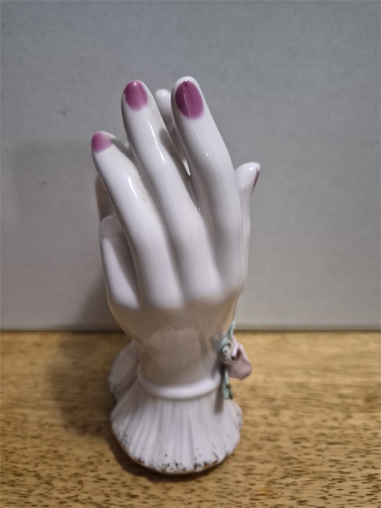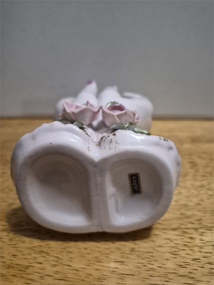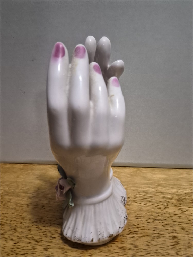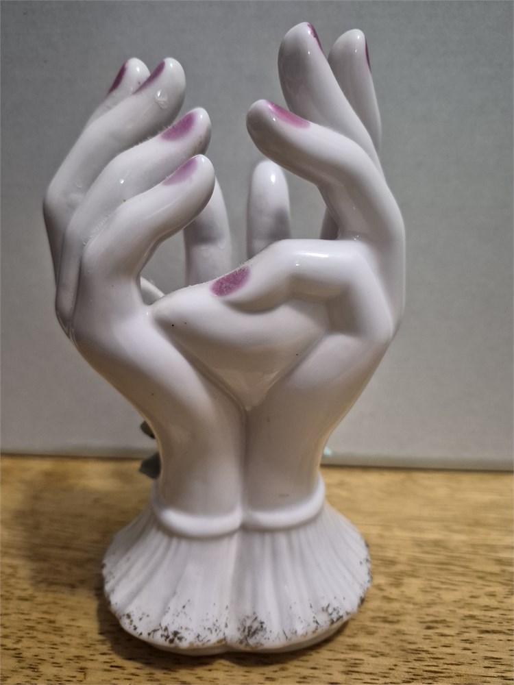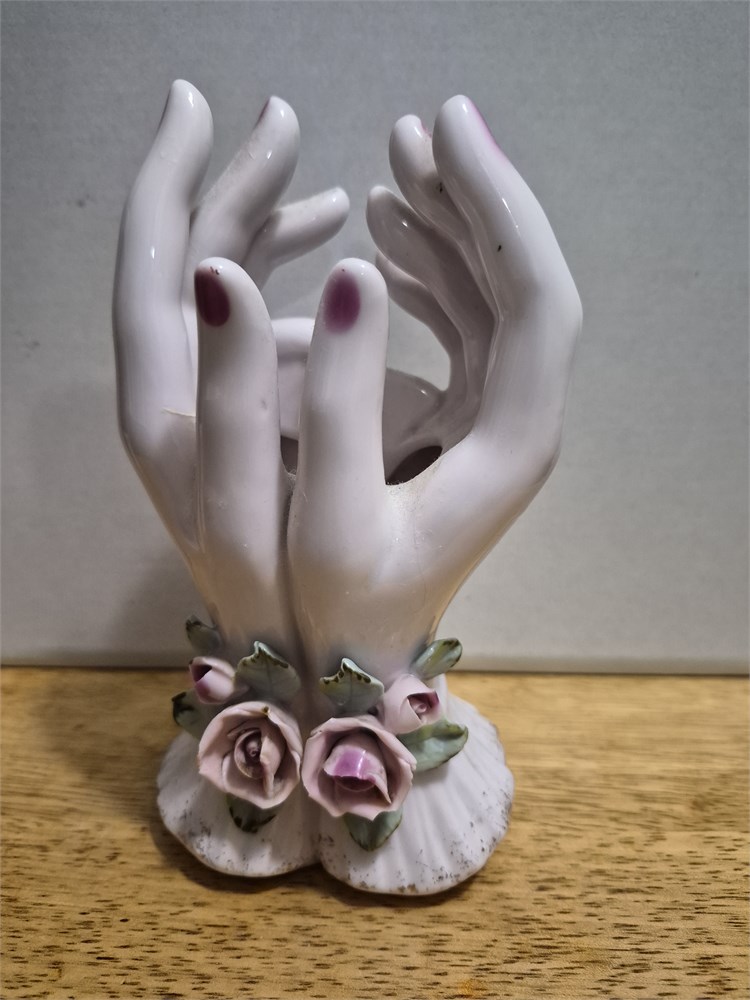 Vintage Hand Vase Pink Flowers Valentine’s Day Pink Milk Glass Heart Japan.
